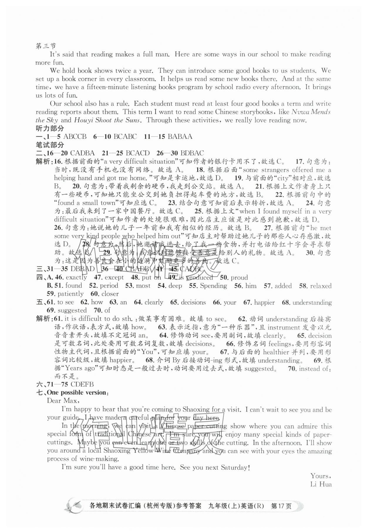 《2023年孟建平各地期末试卷汇编九年级英语上册人教版杭州专版》