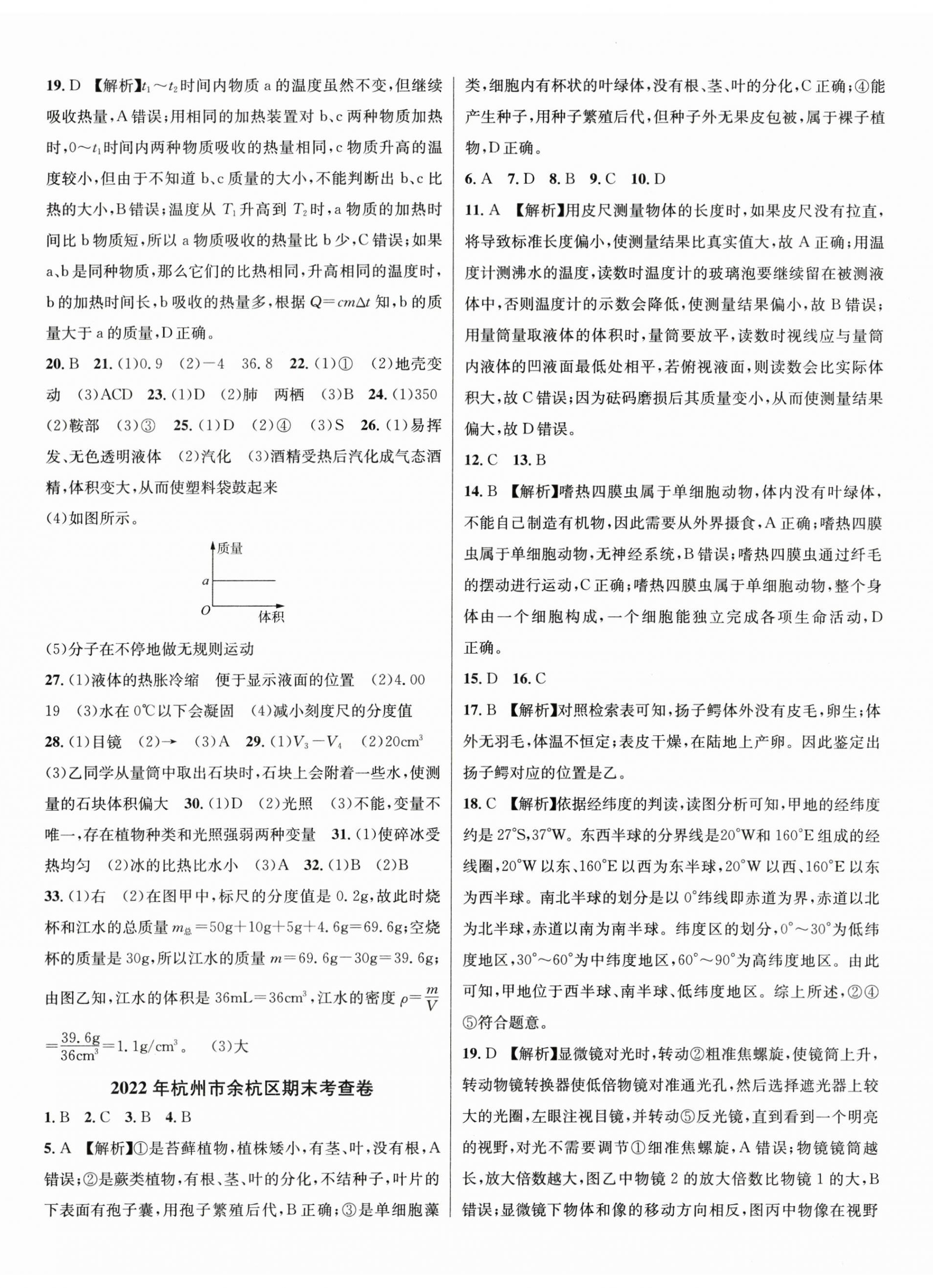 注:目前有些书本章节名称可能整理的还不是很完善,但都是按照顺序排列的,请同学们按照顺序仔细查找。练习册 2023年期末试卷汇编浙江教育出版社七年级科学上册浙教版 答案主要是用来给同学们做完题方便对答案用的,请勿直接抄袭。