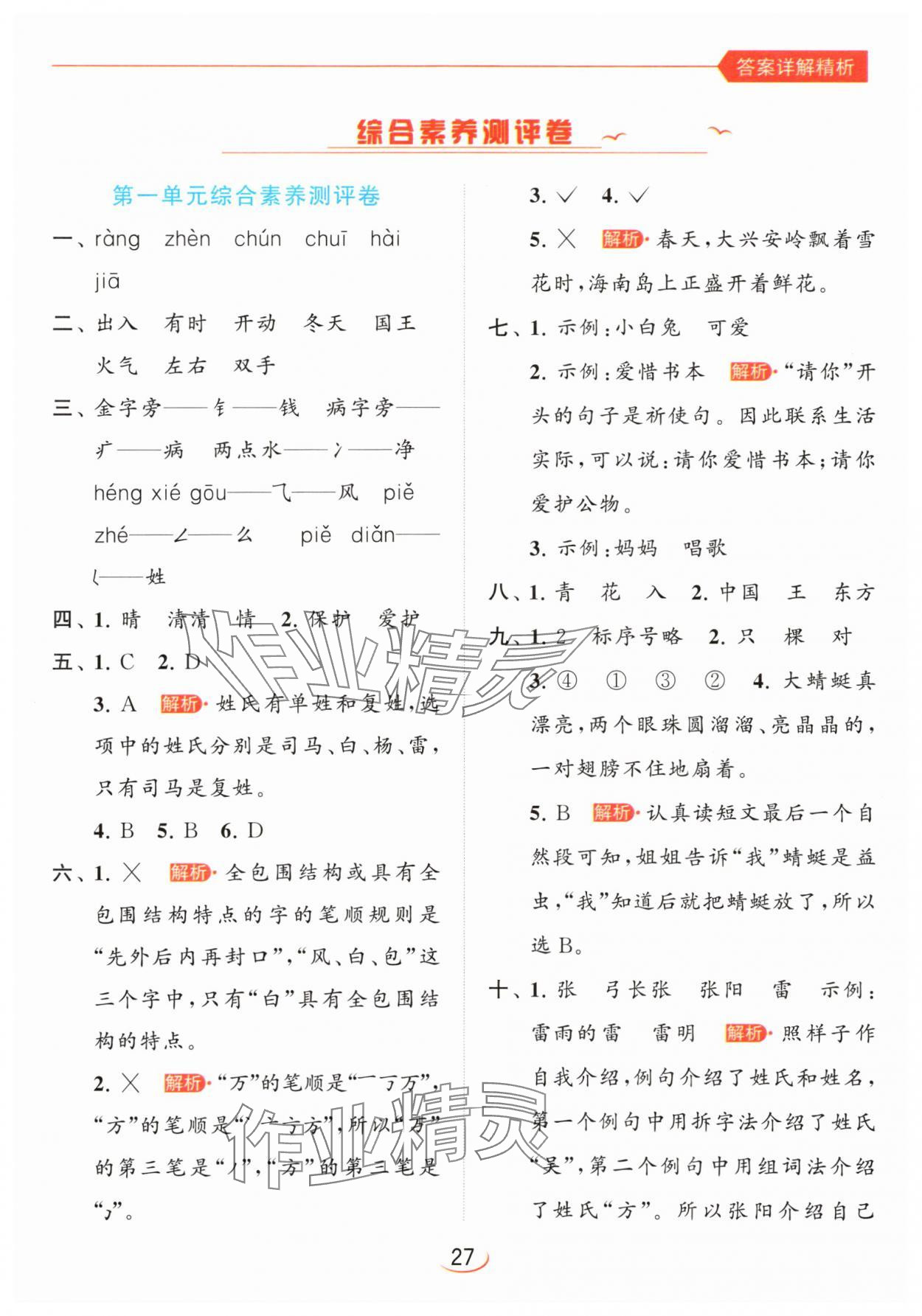 注:目前有些书本章节名称可能整理的还不是很完善,但都是按照顺序排列的,请同学们按照顺序仔细查找。练习册 2024年亮点给力提优班一年级语文下册人教版 答案主要是用来给同学们做完题方便对答案用的,请勿直接抄袭。