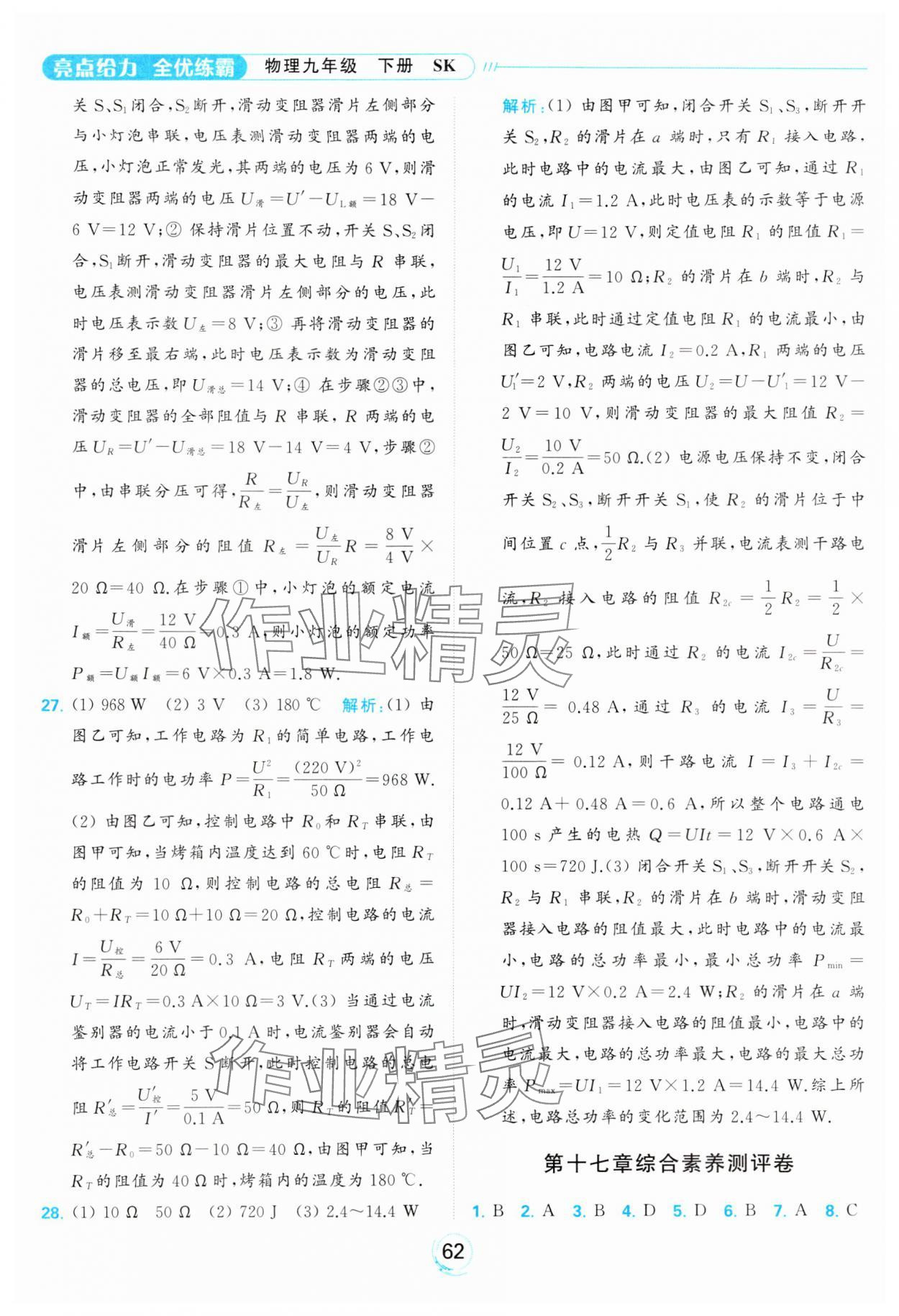 2024年亮点给力全优练霸九年级物理下册苏科版