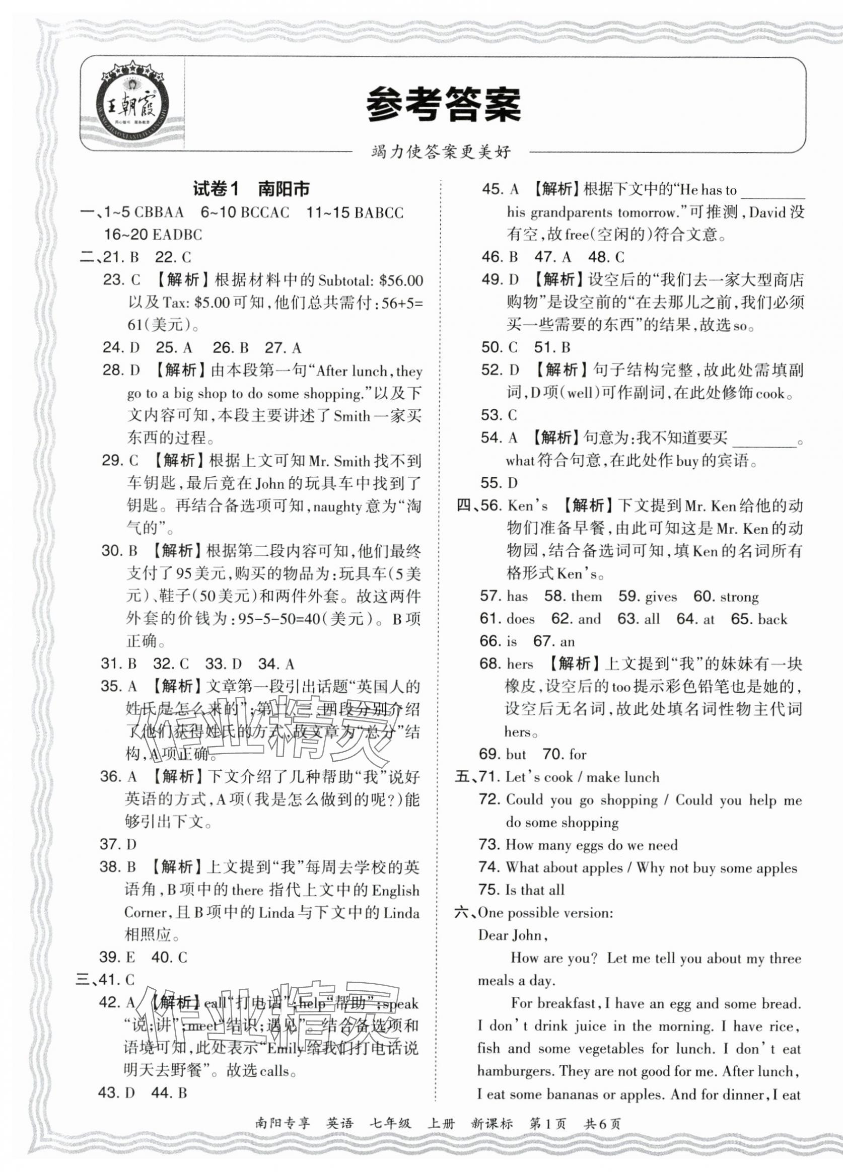 注:目前有些书本章节名称可能整理的还不是很完善,但都是按照顺序排列的,请同学们按照顺序仔细查找。练习册 2024年王朝霞期末真题精编七年级英语上册仁爱版郑州专版 答案主要是用来给同学们做完题方便对答案用的,请勿直接抄袭。