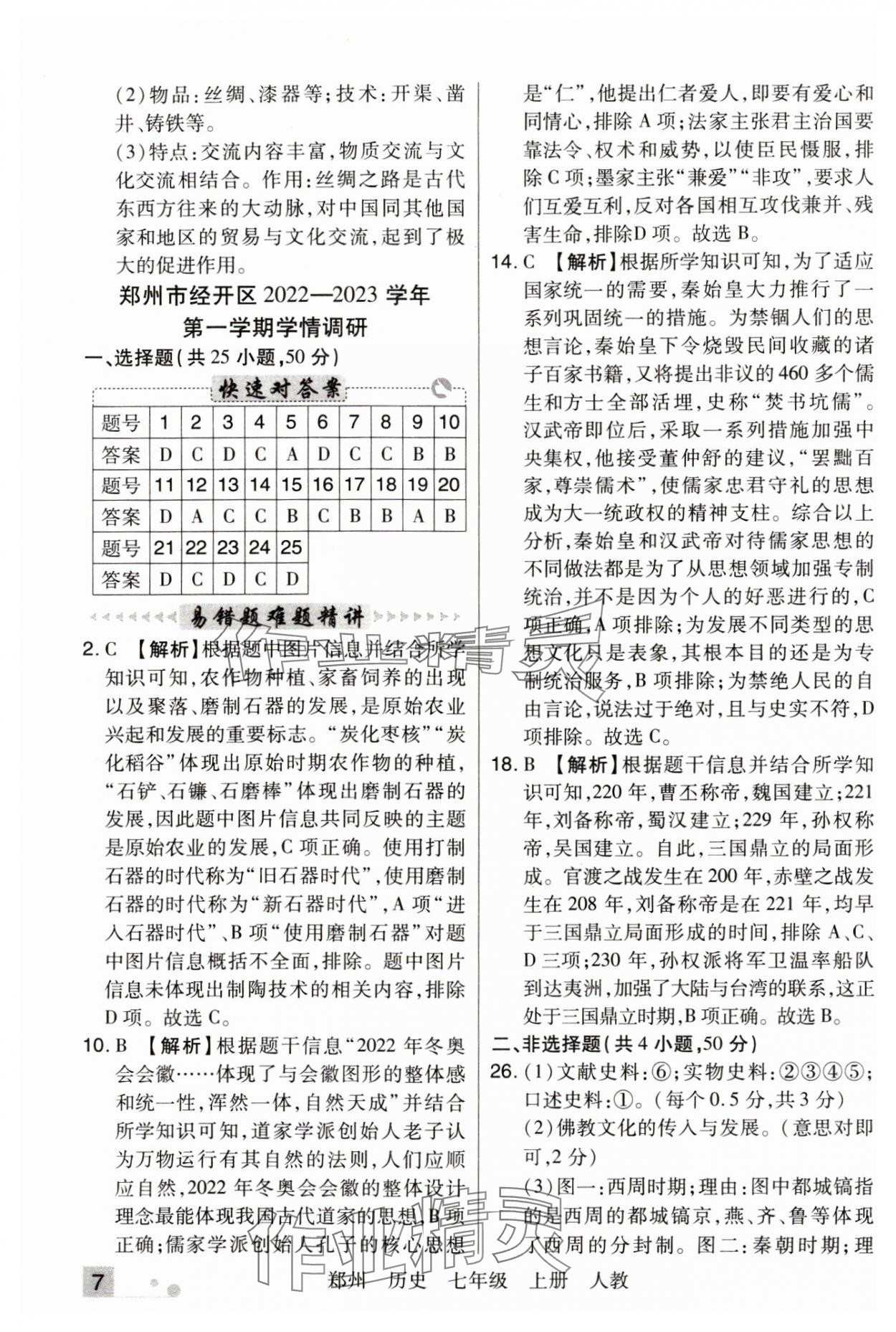 注:目前有些书本章节名称可能整理的还不是很完善,但都是按照顺序排列的,请同学们按照顺序仔细查找。练习册 2024年期末考试必刷卷七年级历史上册人教版郑州专版 答案主要是用来给同学们做完题方便对答案用的,请勿直接抄袭。