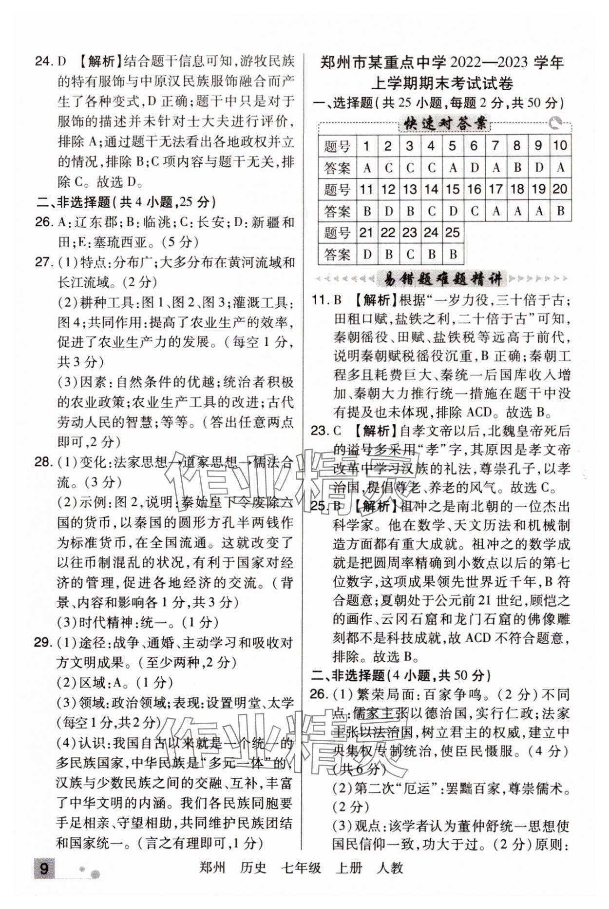 注:目前有些书本章节名称可能整理的还不是很完善,但都是按照顺序排列的,请同学们按照顺序仔细查找。练习册 2024年期末考试必刷卷七年级历史上册人教版郑州专版 答案主要是用来给同学们做完题方便对答案用的,请勿直接抄袭。