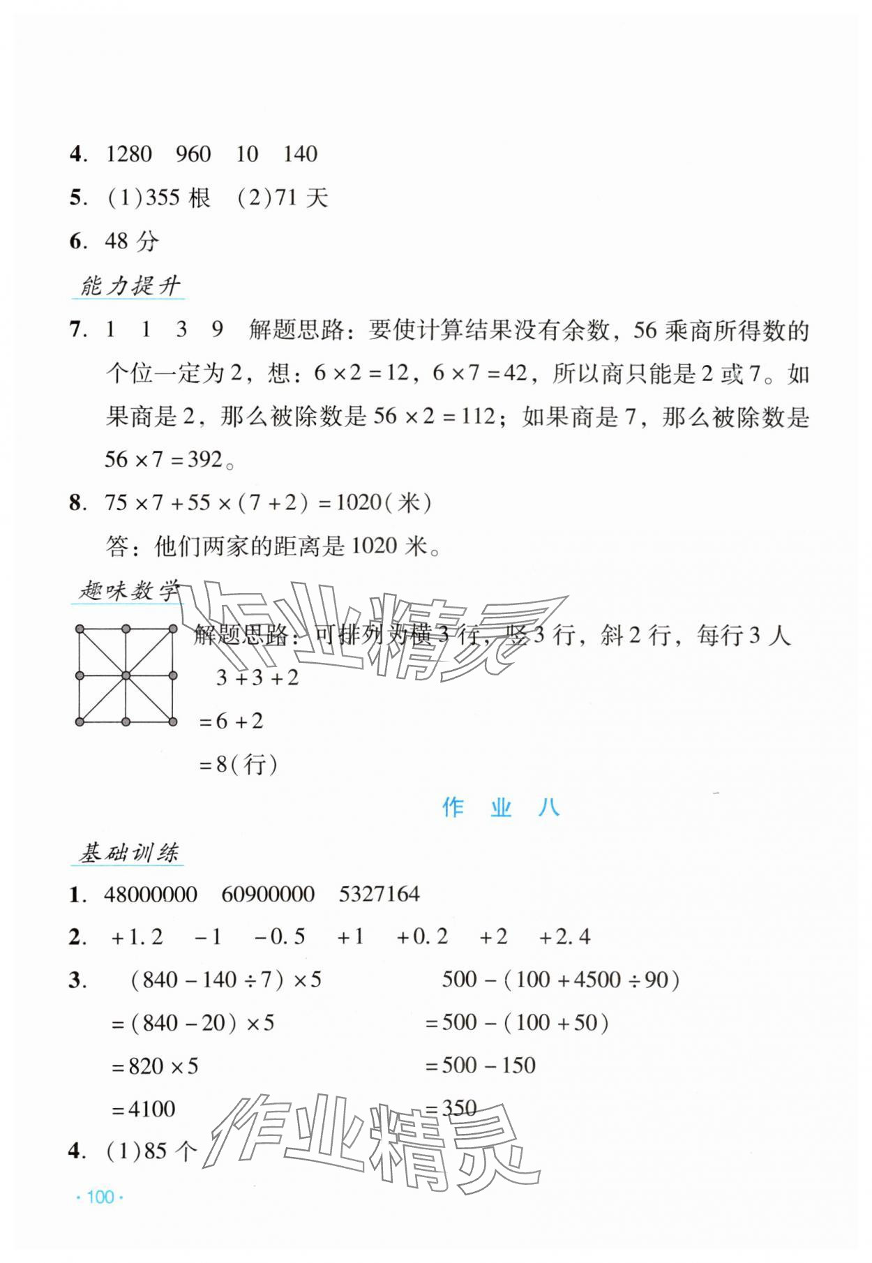 2024年假日数学寒假吉林出版集团股份有限公司四年级北师大版B版