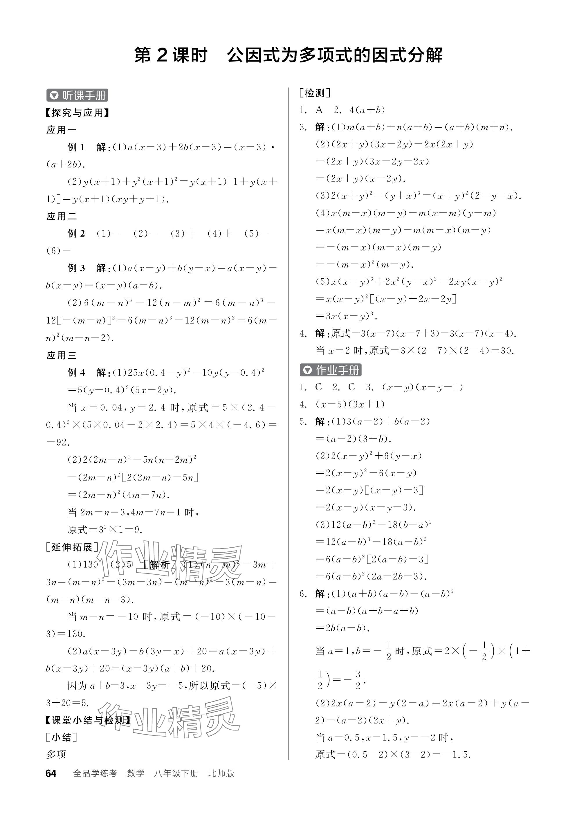 注:目前有些书本章节名称可能整理的还不是很完善,但都是按照顺序排列的,请同学们按照顺序仔细查找。练习册 2024年全品学练考八年级数学下册北师大版 答案主要是用来给同学们做完题方便对答案用的,请勿直接抄袭。