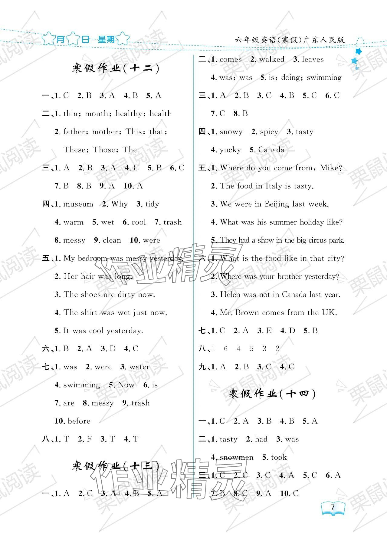 注:目前有些书本章节名称可能整理的还不是很完善,但都是按照顺序排列的,请同学们按照顺序仔细查找。练习册 2024年阳光假日寒假六年级英语粤人版 答案主要是用来给同学们做完题方便对答案用的,请勿直接抄袭。