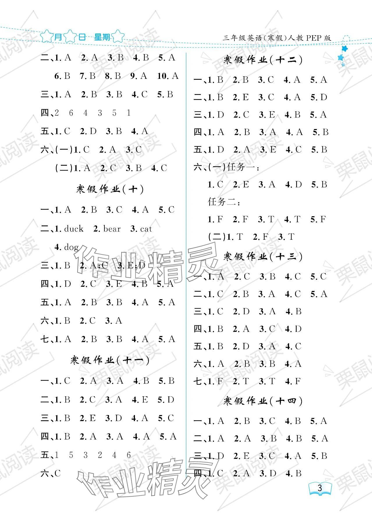 注:目前有些书本章节名称可能整理的还不是很完善,但都是按照顺序排列的,请同学们按照顺序仔细查找。练习册 2024年阳光假日寒假三年级英语人教版 答案主要是用来给同学们做完题方便对答案用的,请勿直接抄袭。
