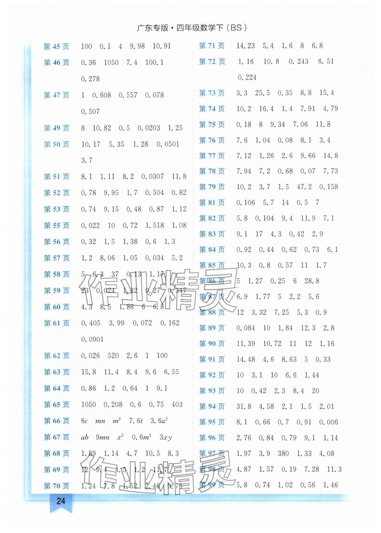 2024年黄冈小状元作业本四年级数学下册北师大版广东专版
