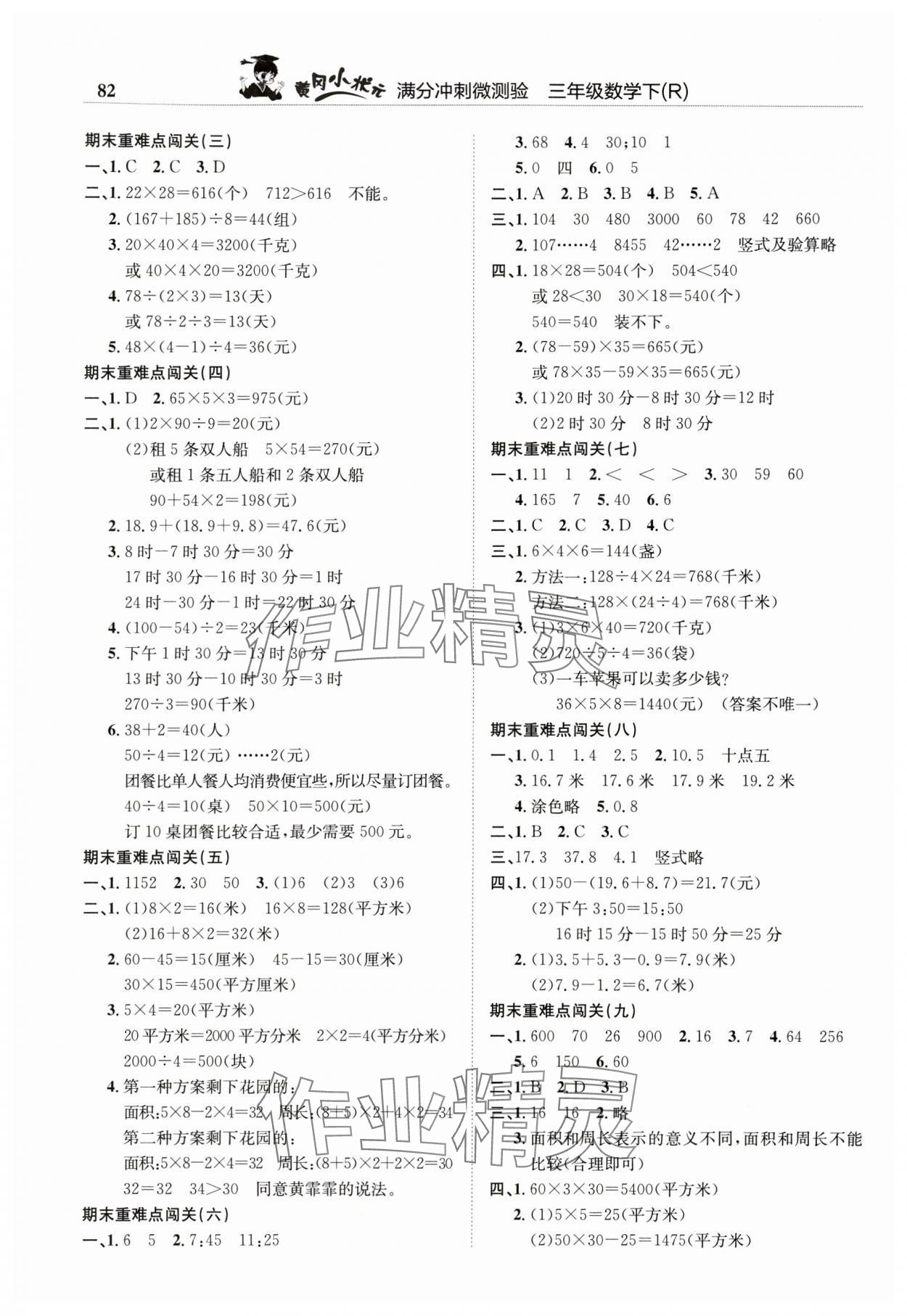 《2024年黄冈小状元满分冲刺微测验三年级数学下册人教版》