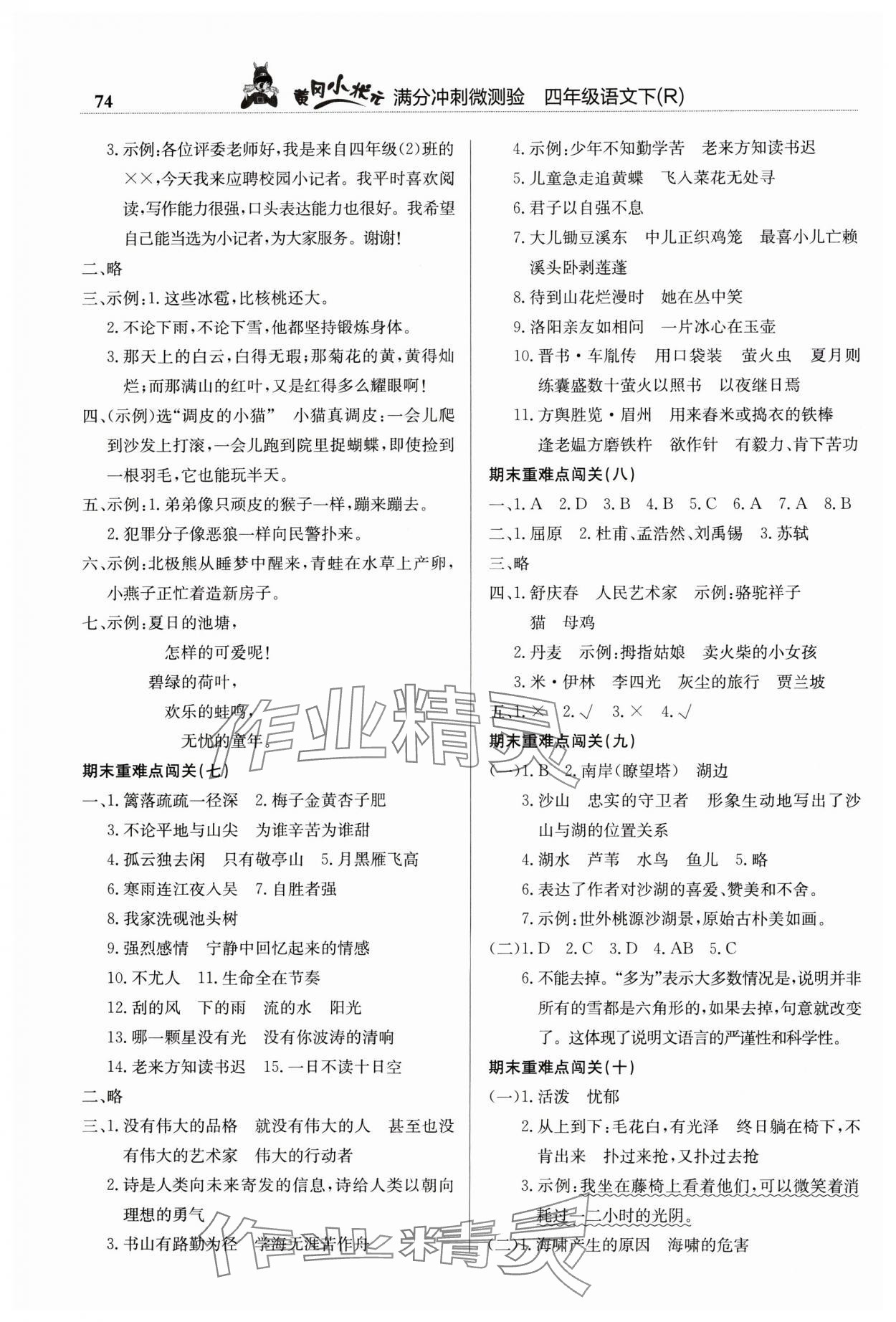 2024年黄冈小状元满分冲刺微测验四年级语文下册人教版