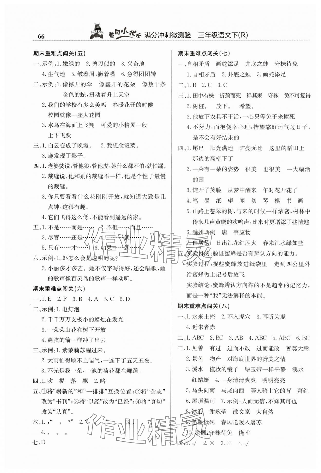 注:目前有些书本章节名称可能整理的还不是很完善,但都是按照顺序排列的,请同学们按照顺序仔细查找。练习册 2024年黄冈小状元满分冲刺微测验三年级语文下册人教版 答案主要是用来给同学们做完题方便对答案用的,请勿直接抄袭。