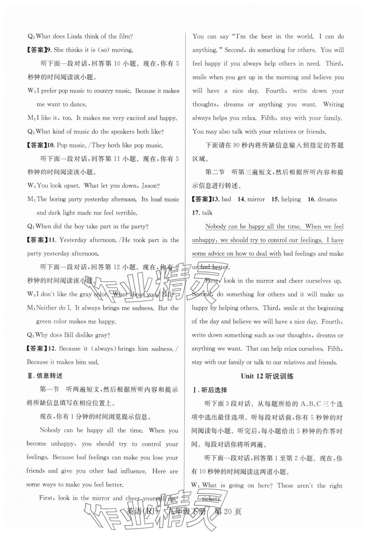 注:目前有些书本章节名称可能整理的还不是很完善,但都是按照顺序排列的,请同学们按照顺序仔细查找。练习册 2024年课时夺冠九年级英语下册人教版 答案主要是用来给同学们做完题方便对答案用的,请勿直接抄袭。