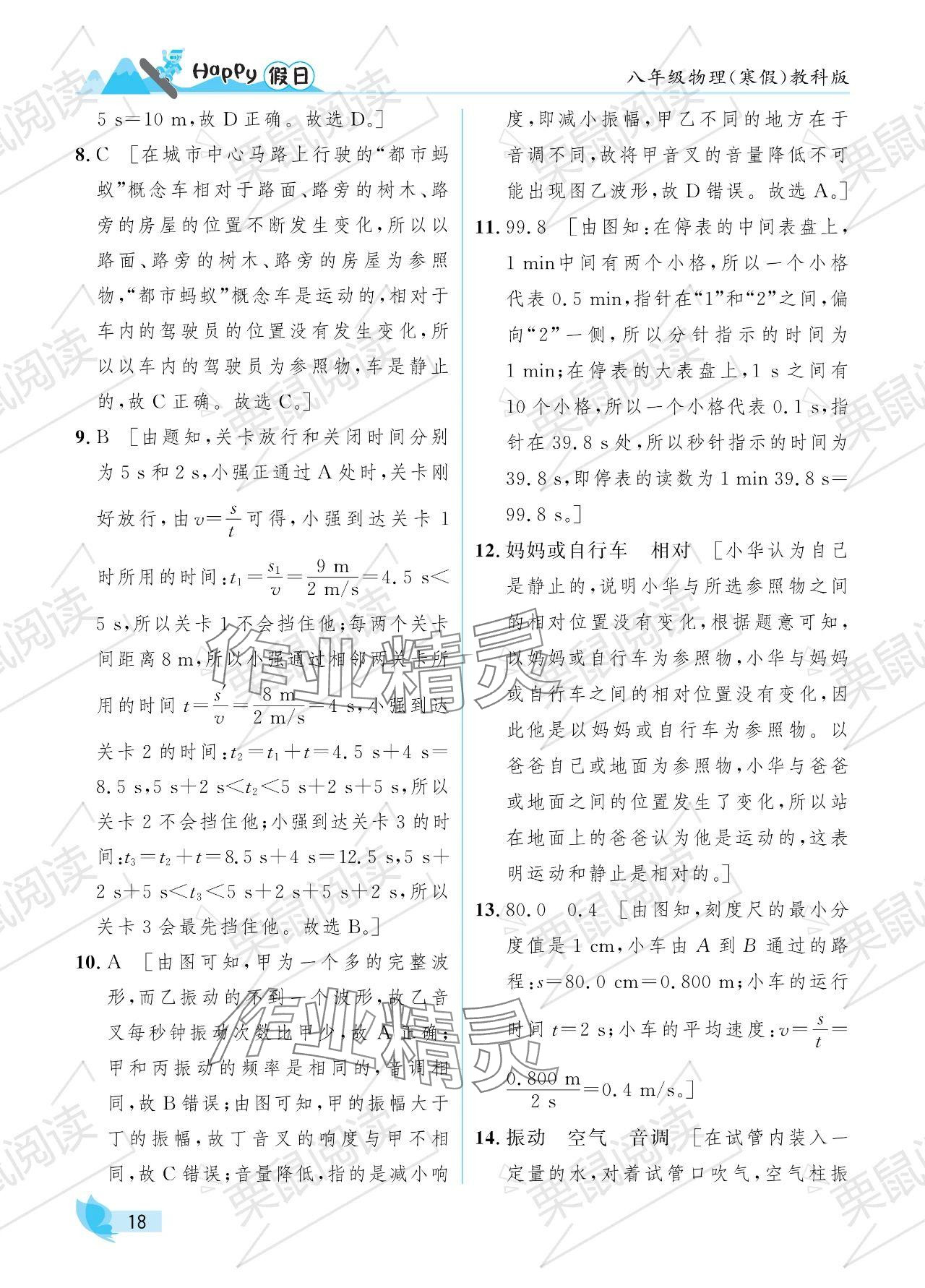 注:目前有些书本章节名称可能整理的还不是很完善,但都是按照顺序排列的,请同学们按照顺序仔细查找。练习册 2024年寒假Happy假日八年级物理教科版 答案主要是用来给同学们做完题方便对答案用的,请勿直接抄袭。