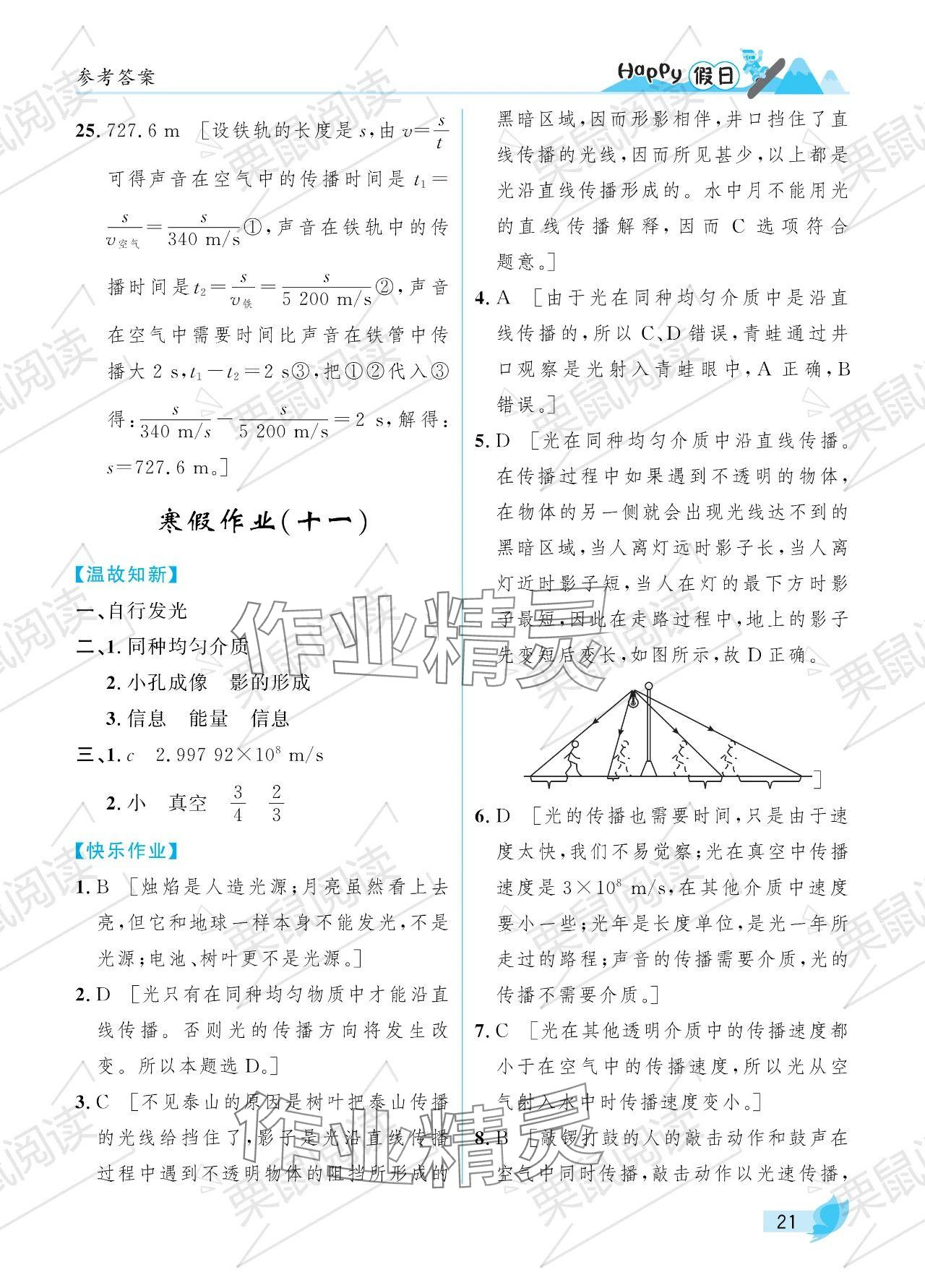 注:目前有些书本章节名称可能整理的还不是很完善,但都是按照顺序排列的,请同学们按照顺序仔细查找。练习册 2024年寒假Happy假日八年级物理教科版 答案主要是用来给同学们做完题方便对答案用的,请勿直接抄袭。