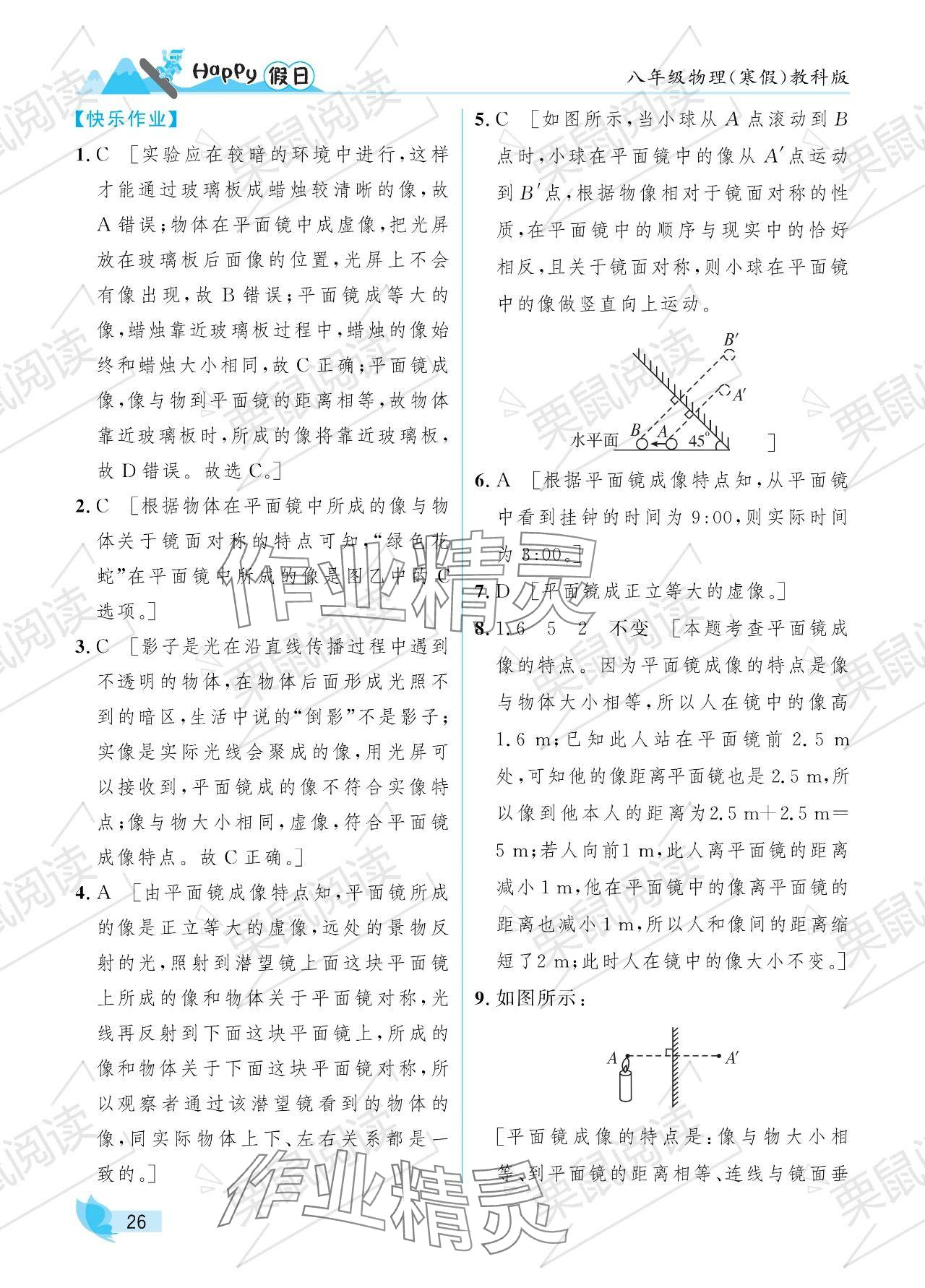 注:目前有些书本章节名称可能整理的还不是很完善,但都是按照顺序排列的,请同学们按照顺序仔细查找。练习册 2024年寒假Happy假日八年级物理教科版 答案主要是用来给同学们做完题方便对答案用的,请勿直接抄袭。
