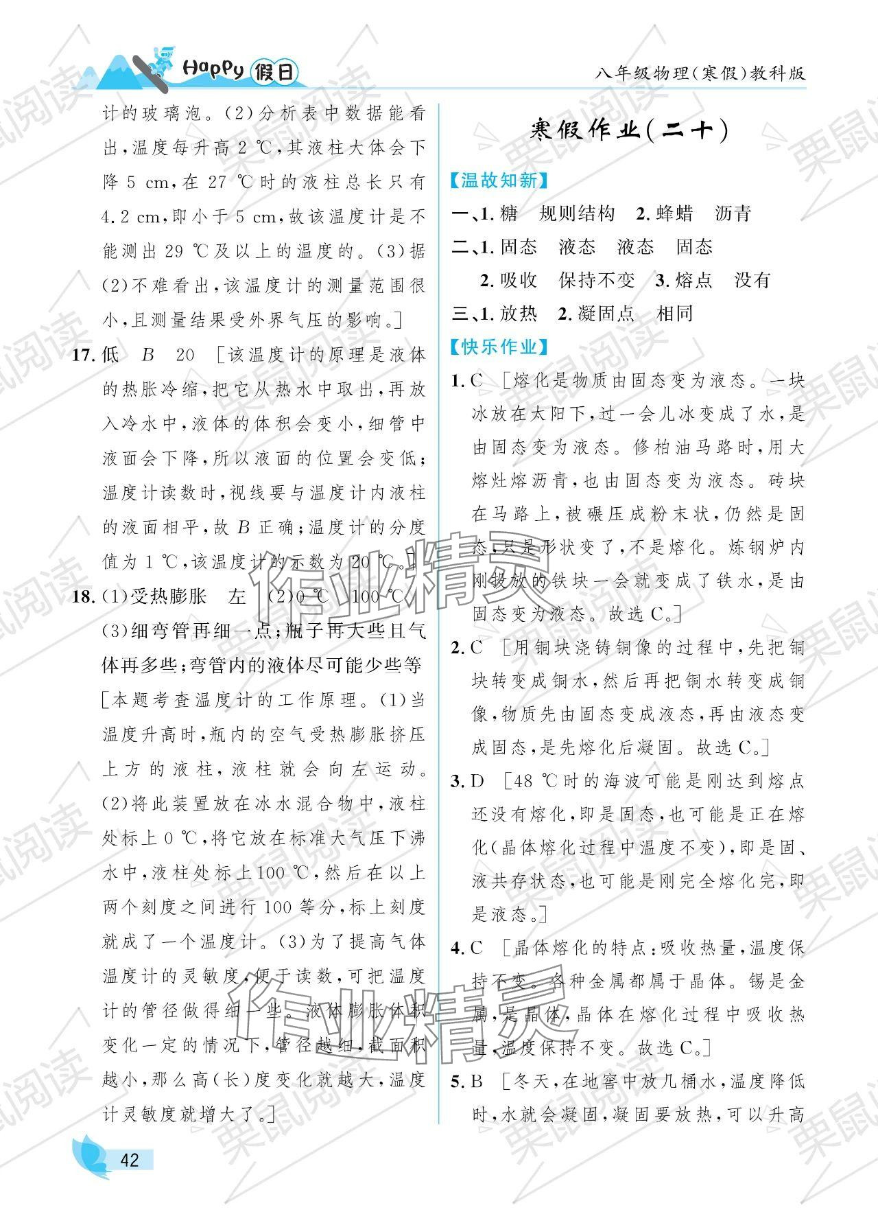 注:目前有些书本章节名称可能整理的还不是很完善,但都是按照顺序排列的,请同学们按照顺序仔细查找。练习册 2024年寒假Happy假日八年级物理教科版 答案主要是用来给同学们做完题方便对答案用的,请勿直接抄袭。