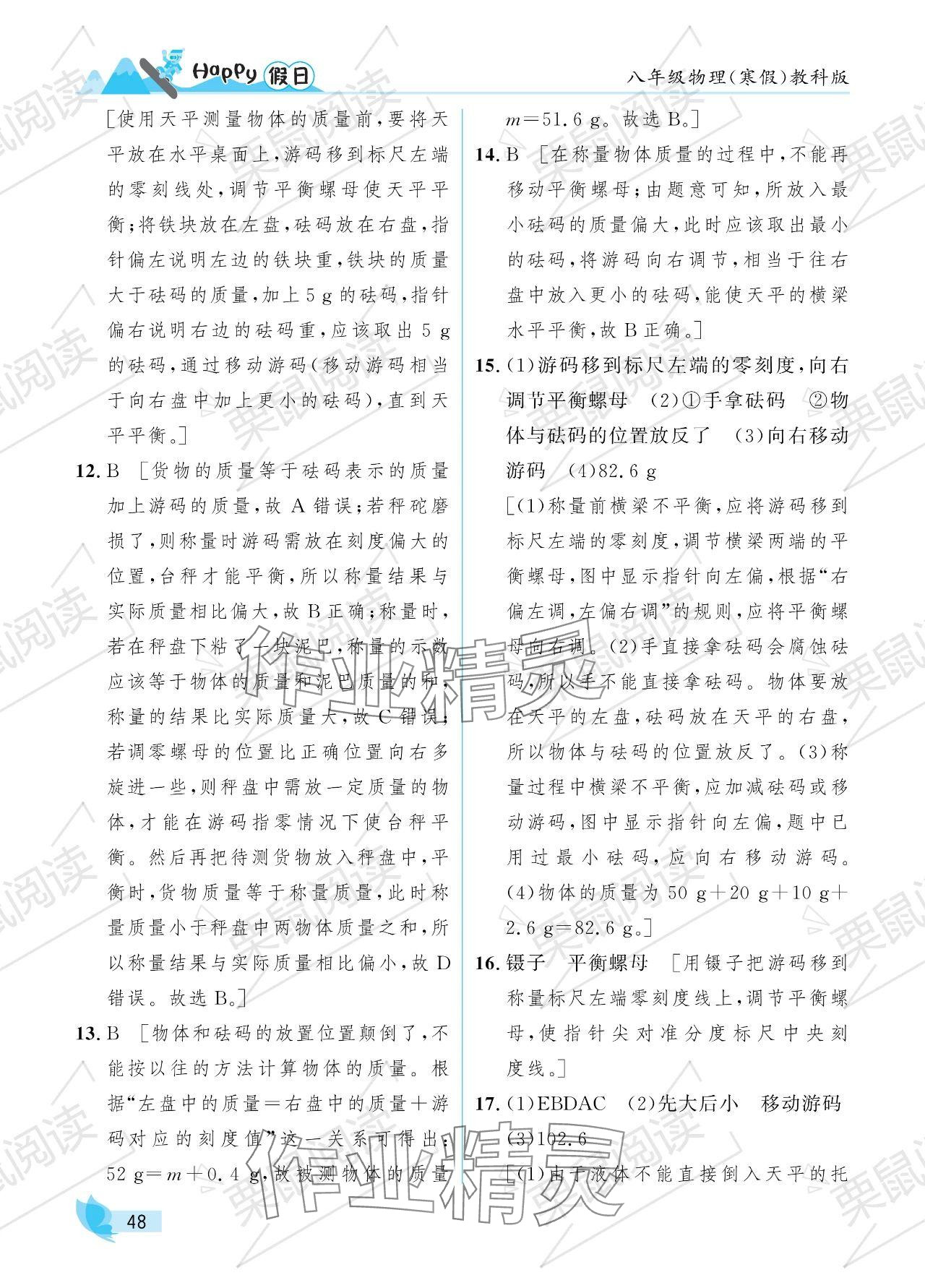 注:目前有些书本章节名称可能整理的还不是很完善,但都是按照顺序排列的,请同学们按照顺序仔细查找。练习册 2024年寒假Happy假日八年级物理教科版 答案主要是用来给同学们做完题方便对答案用的,请勿直接抄袭。