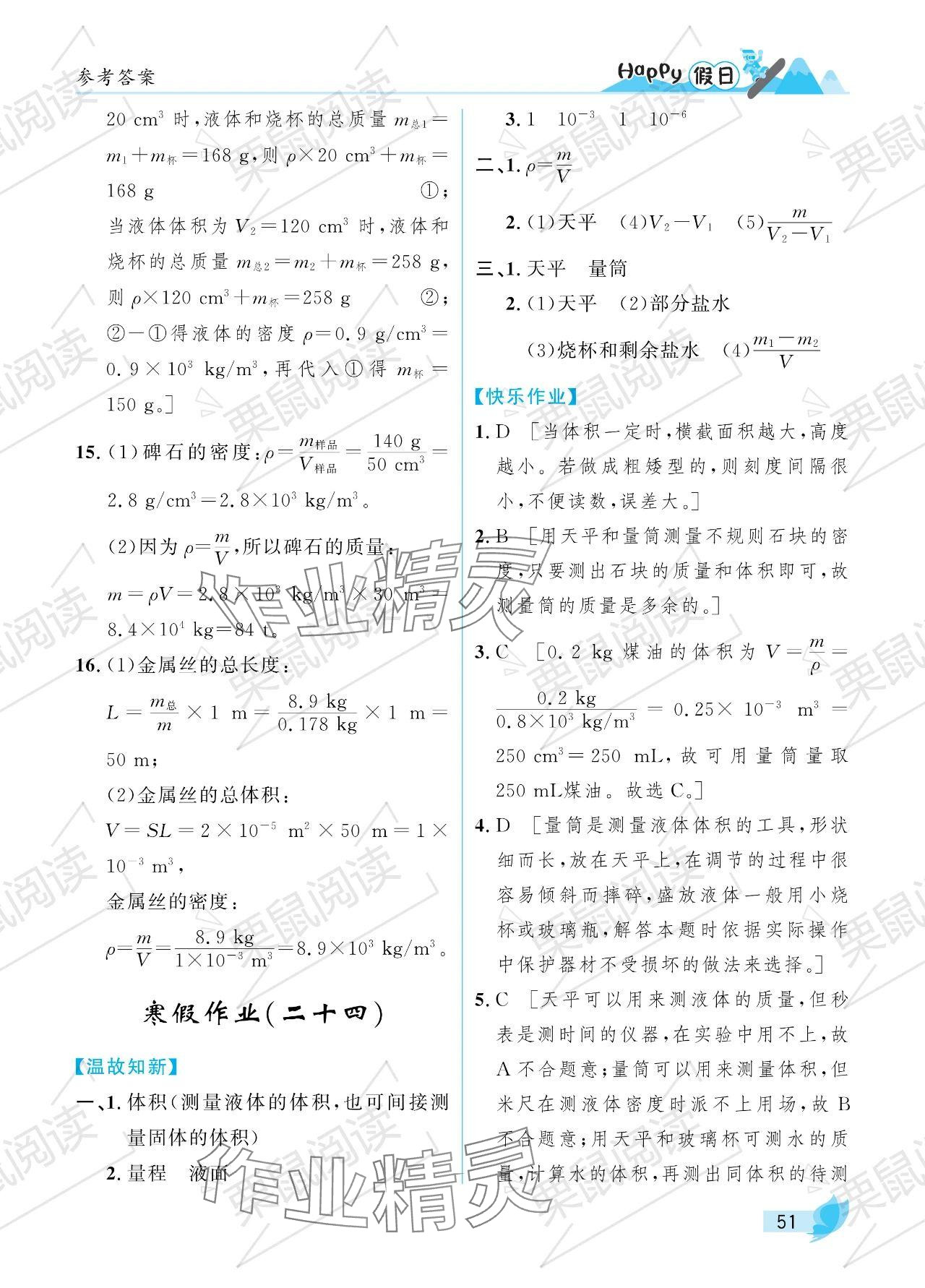 注:目前有些书本章节名称可能整理的还不是很完善,但都是按照顺序排列的,请同学们按照顺序仔细查找。练习册 2024年寒假Happy假日八年级物理教科版 答案主要是用来给同学们做完题方便对答案用的,请勿直接抄袭。