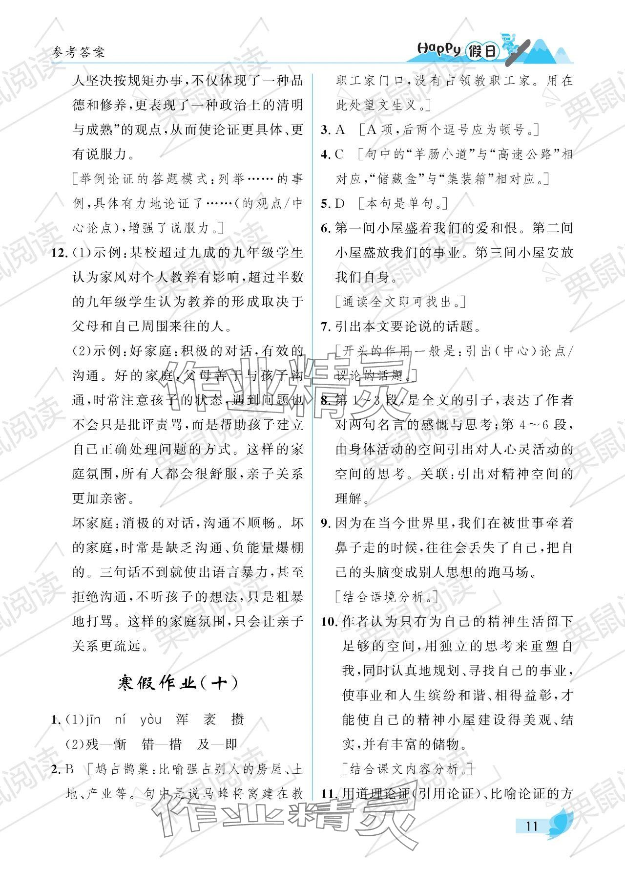 注:目前有些书本章节名称可能整理的还不是很完善,但都是按照顺序排列的,请同学们按照顺序仔细查找。练习册 2024年寒假Happy假日九年级语文人教版 答案主要是用来给同学们做完题方便对答案用的,请勿直接抄袭。