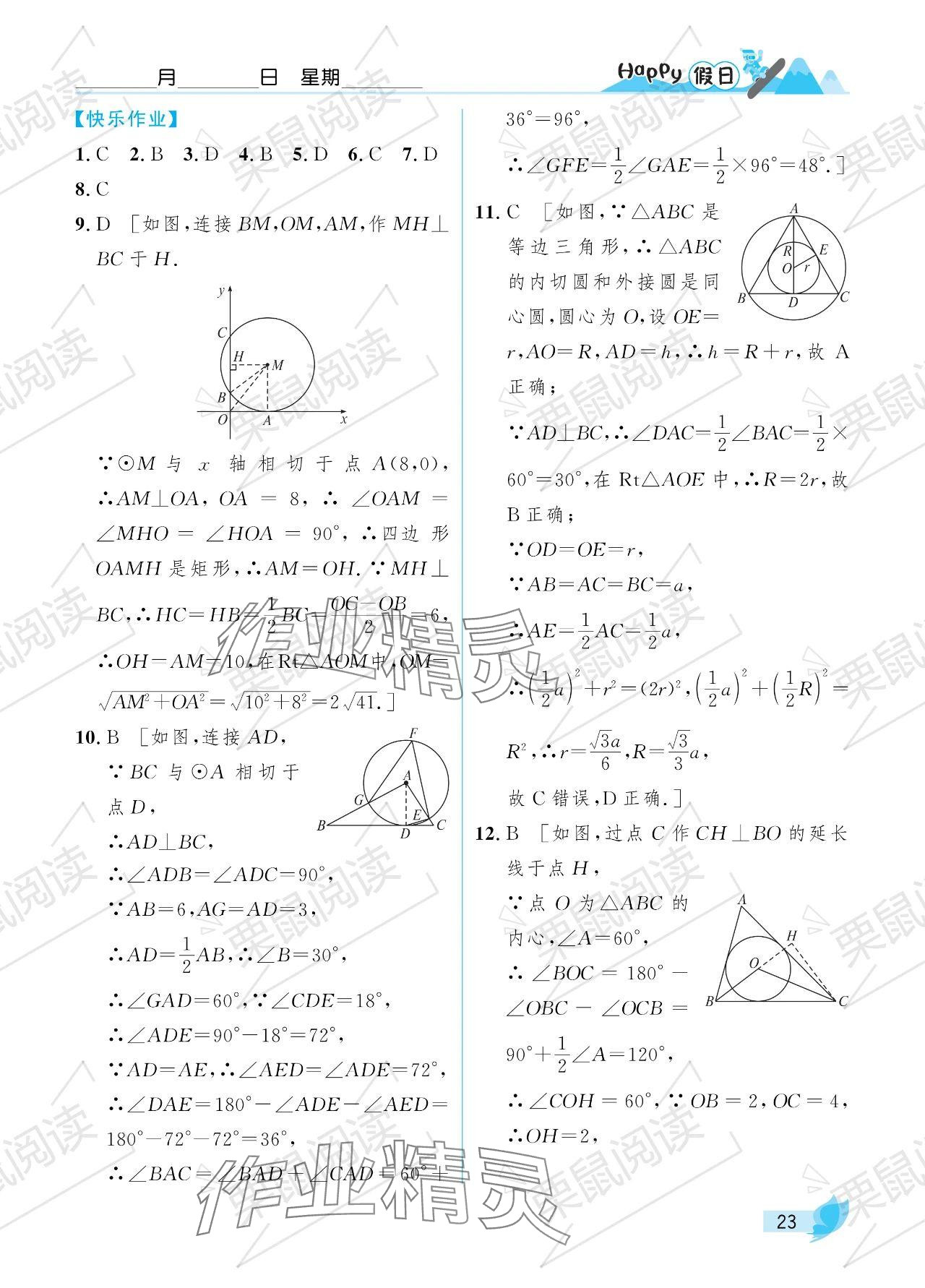 注:目前有些书本章节名称可能整理的还不是很完善,但都是按照顺序排列的,请同学们按照顺序仔细查找。练习册 2024年寒假Happy假日九年级数学人教版 答案主要是用来给同学们做完题方便对答案用的,请勿直接抄袭。