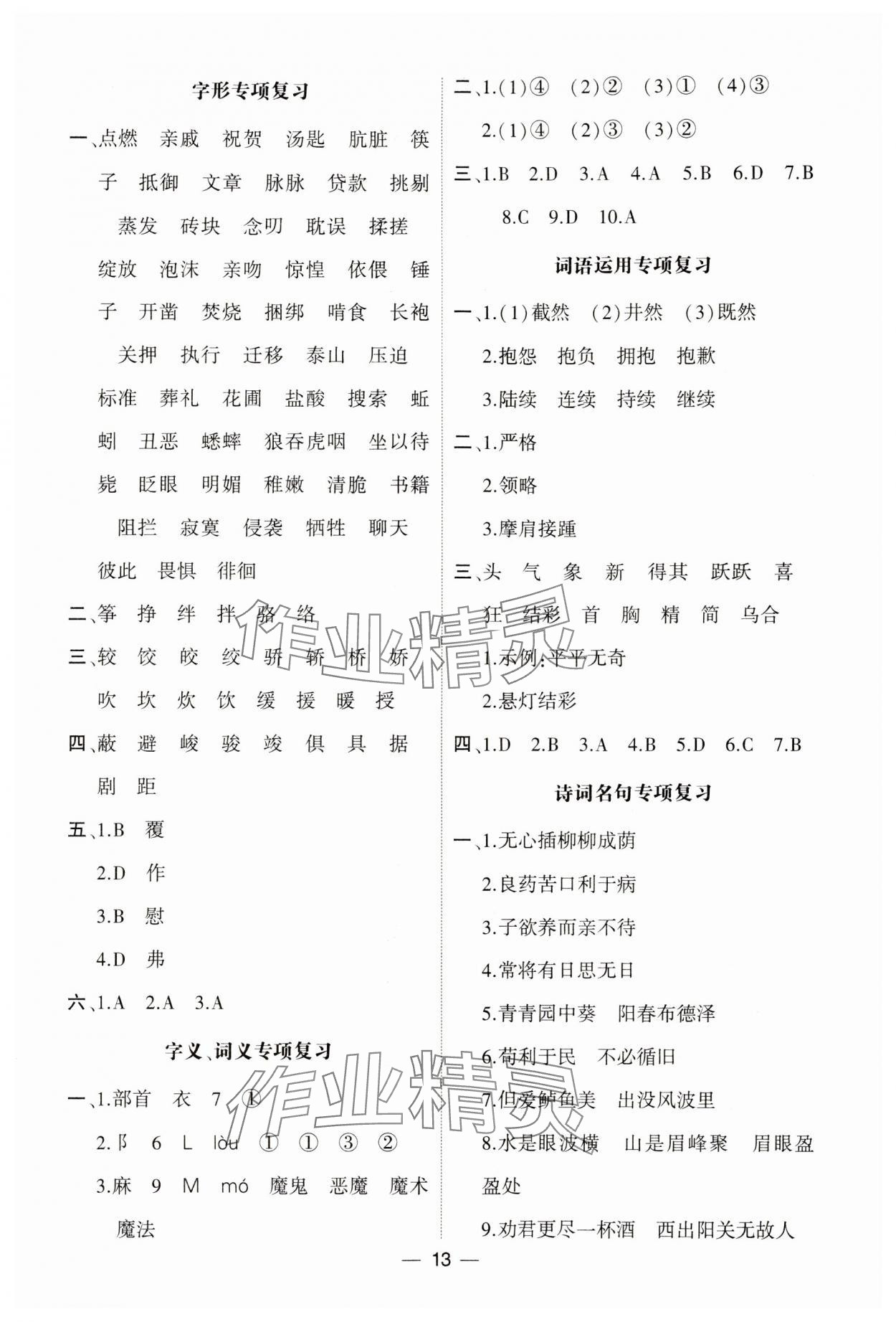 注:目前有些书本章节名称可能整理的还不是很完善,但都是按照顺序排列的,请同学们按照顺序仔细查找。练习册 2024年经纶学典默写达人六年级语文下册人教版 答案主要是用来给同学们做完题方便对答案用的,请勿直接抄袭。