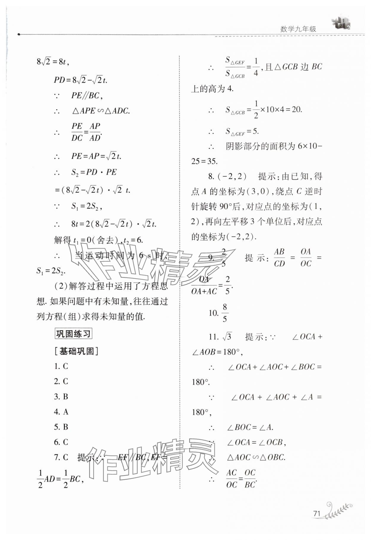 注:目前有些书本章节名称可能整理的还不是很完善,但都是按照顺序排列的,请同学们按照顺序仔细查找。练习册 2024年快乐寒假山西教育出版社九年级数学华师大版 答案主要是用来给同学们做完题方便对答案用的,请勿直接抄袭。