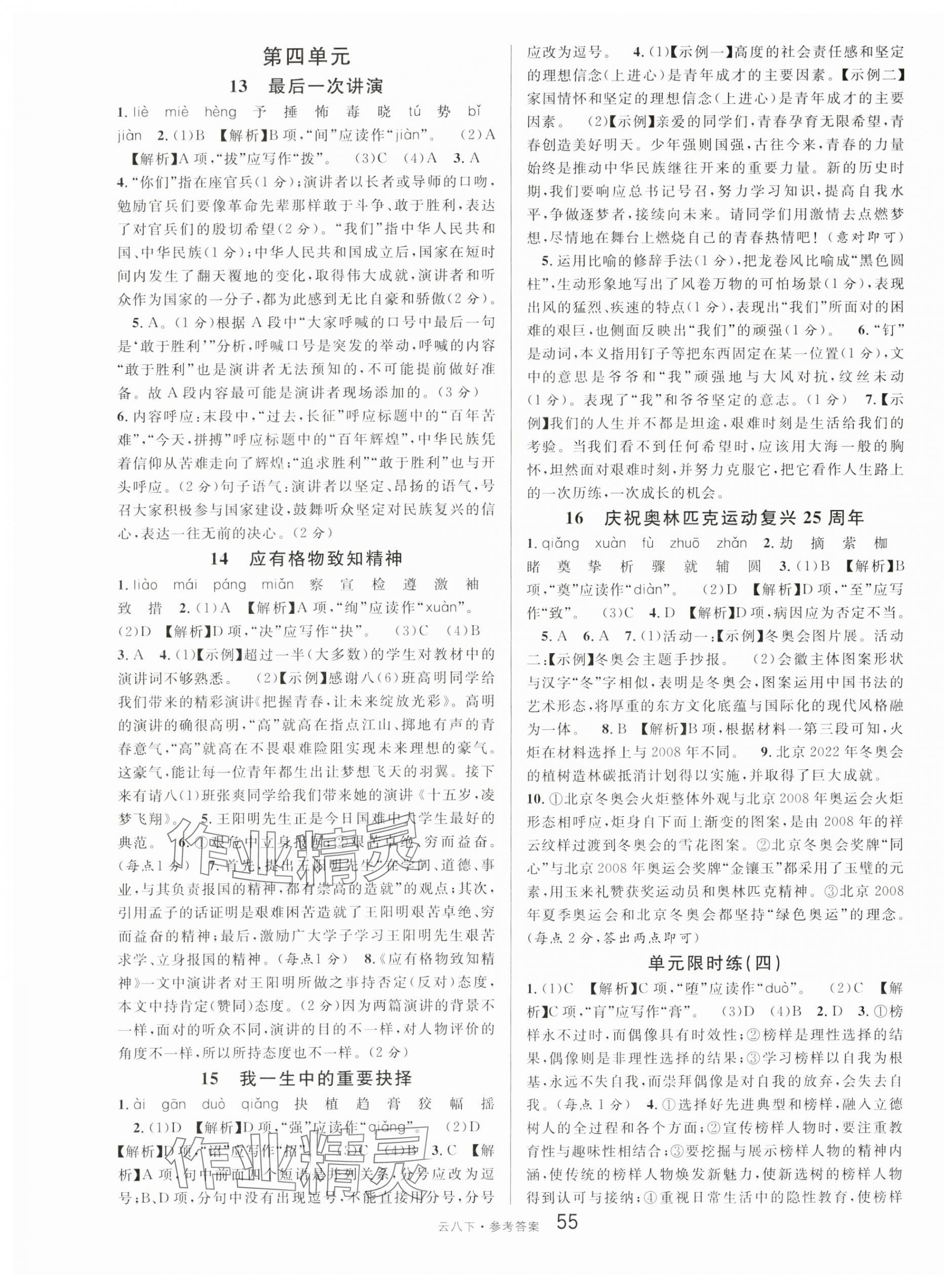 注:目前有些书本章节名称可能整理的还不是很完善,但都是按照顺序排列的,请同学们按照顺序仔细查找。练习册 2024年名校课堂八年级语文下册人教版云南专版 答案主要是用来给同学们做完题方便对答案用的,请勿直接抄袭。