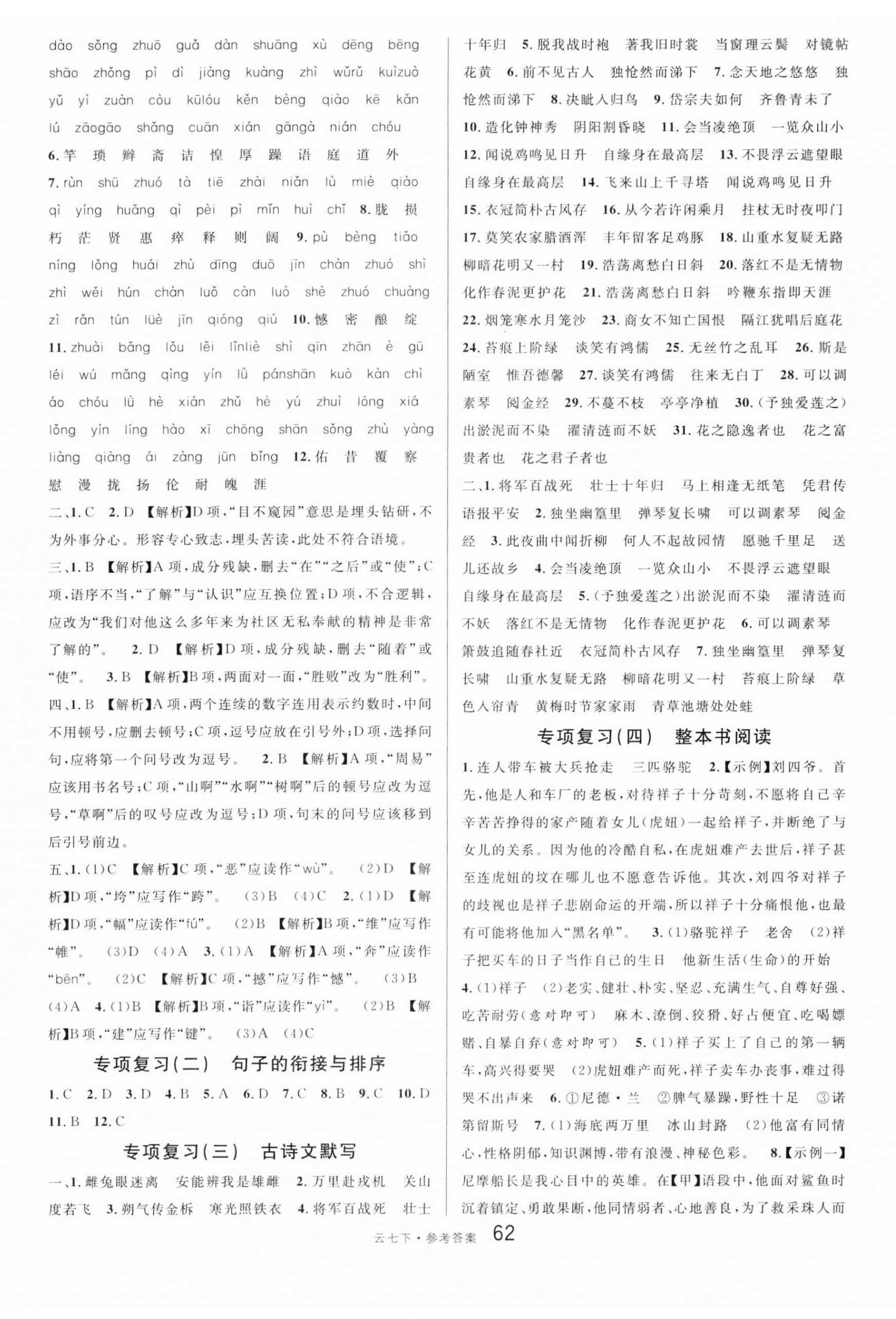 注:目前有些书本章节名称可能整理的还不是很完善,但都是按照顺序排列的,请同学们按照顺序仔细查找。练习册 2024年名校课堂七年级语文下册人教版云南专版 答案主要是用来给同学们做完题方便对答案用的,请勿直接抄袭。
