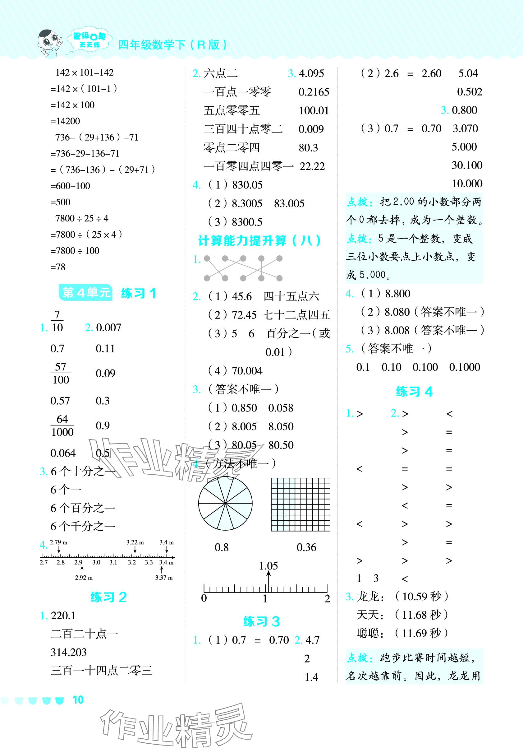 注:目前有些书本章节名称可能整理的还不是很完善,但都是按照顺序排列的,请同学们按照顺序仔细查找。练习册 2024年星级口算天天练四年级数学下册人教版 答案主要是用来给同学们做完题方便对答案用的,请勿直接抄袭。