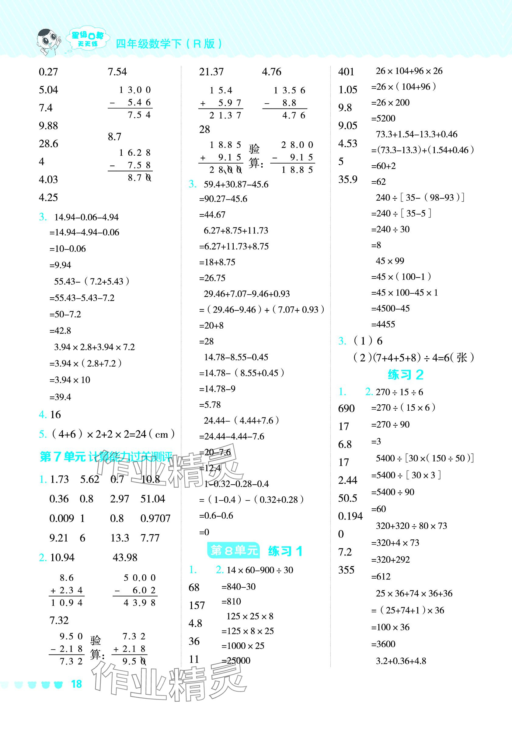 注:目前有些书本章节名称可能整理的还不是很完善,但都是按照顺序排列的,请同学们按照顺序仔细查找。练习册 2024年星级口算天天练四年级数学下册人教版 答案主要是用来给同学们做完题方便对答案用的,请勿直接抄袭。