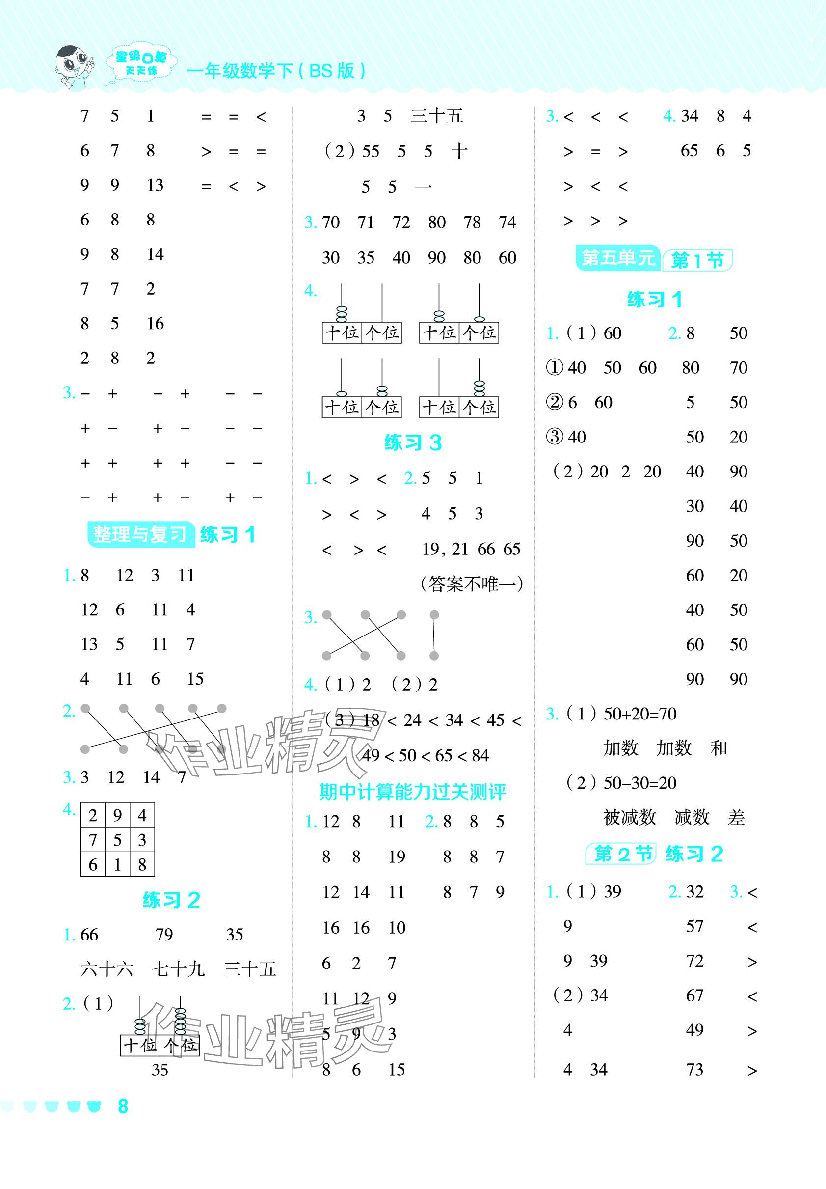 注:目前有些书本章节名称可能整理的还不是很完善,但都是按照顺序排列的,请同学们按照顺序仔细查找。练习册 2024年星级口算天天练一年级数学下册北师大版 答案主要是用来给同学们做完题方便对答案用的,请勿直接抄袭。