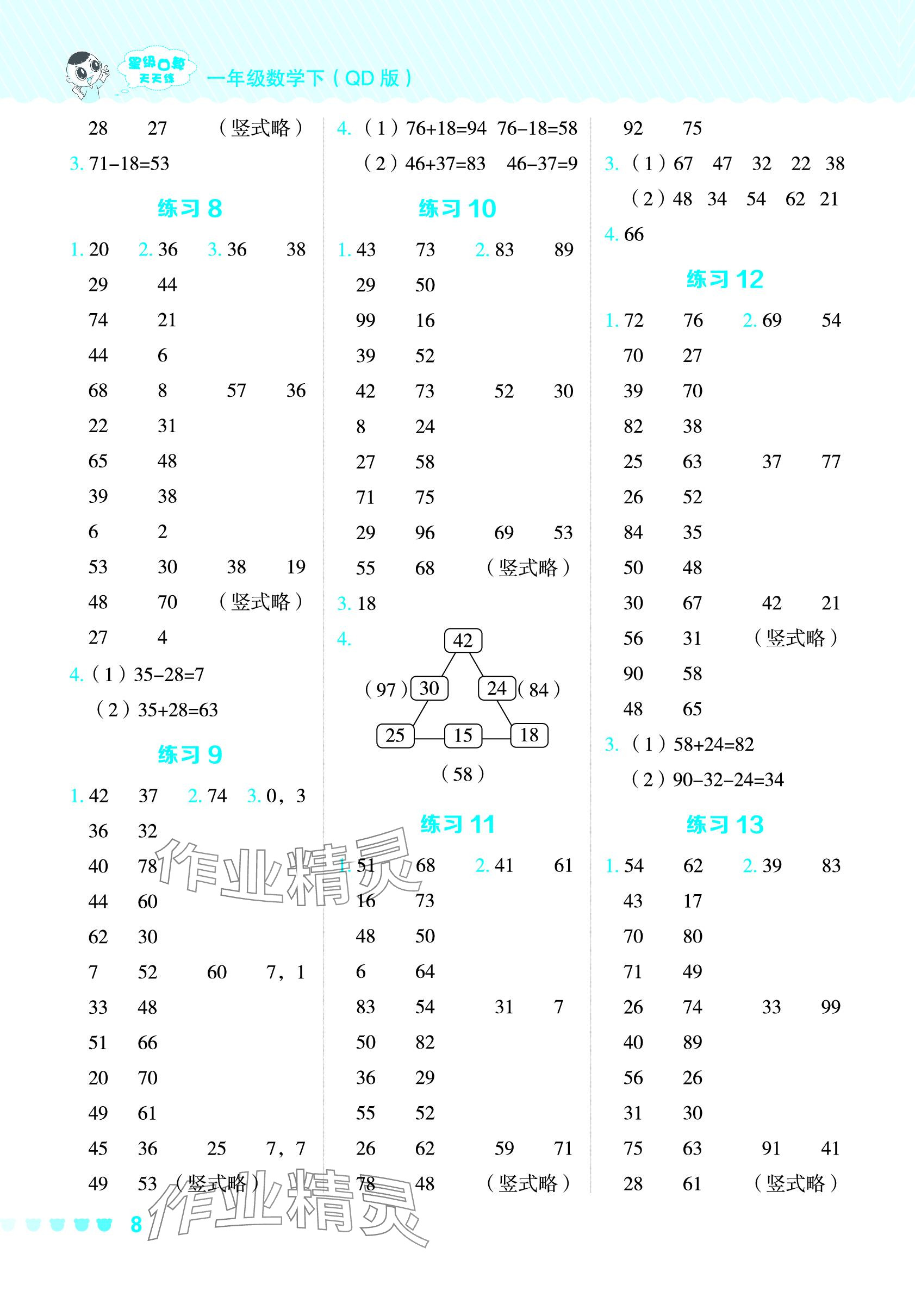 注:目前有些书本章节名称可能整理的还不是很完善,但都是按照顺序排列的,请同学们按照顺序仔细查找。练习册 2024年星级口算天天练一年级数学下册青岛版 答案主要是用来给同学们做完题方便对答案用的,请勿直接抄袭。