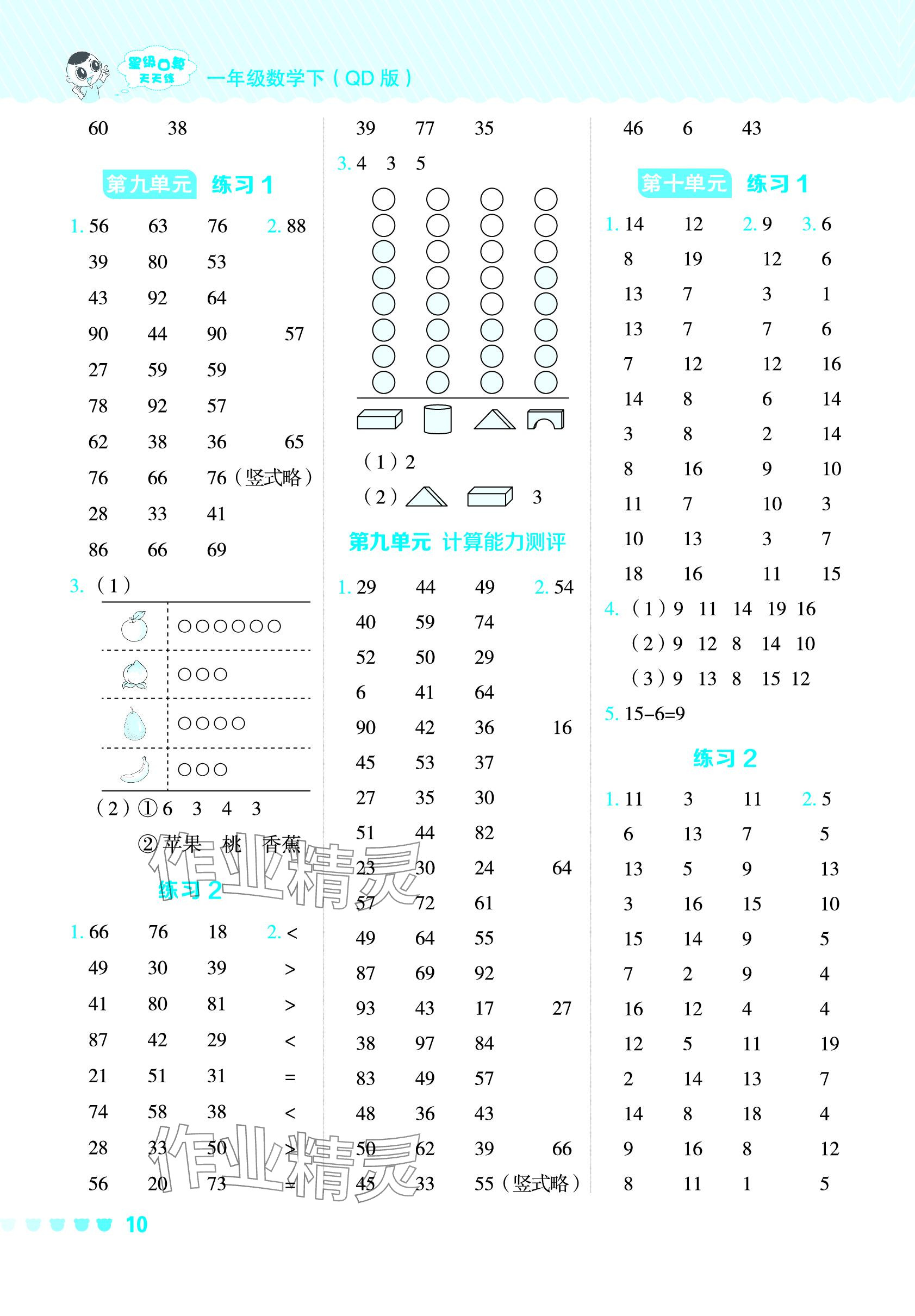 注:目前有些书本章节名称可能整理的还不是很完善,但都是按照顺序排列的,请同学们按照顺序仔细查找。练习册 2024年星级口算天天练一年级数学下册青岛版 答案主要是用来给同学们做完题方便对答案用的,请勿直接抄袭。