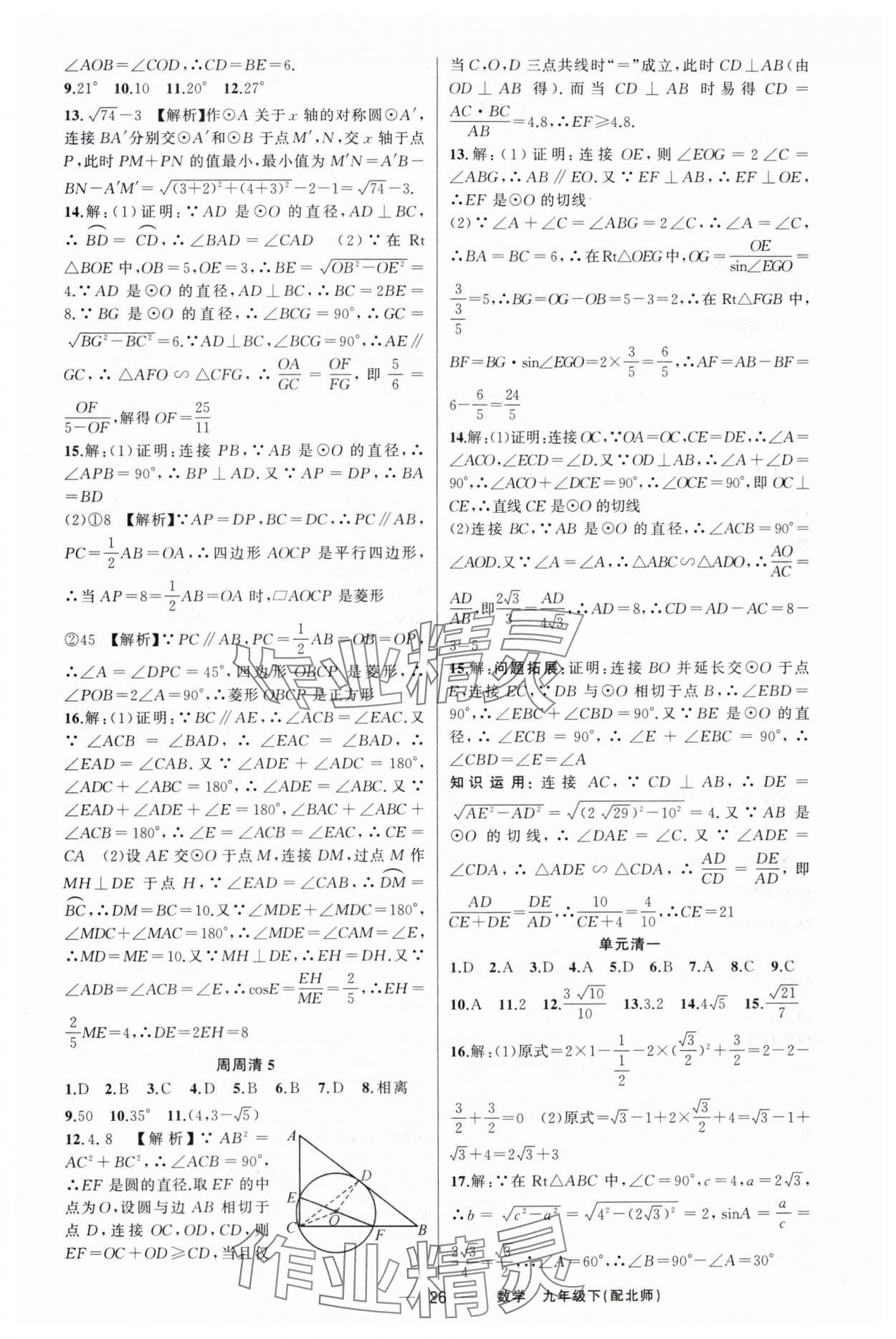 注:目前有些书本章节名称可能整理的还不是很完善,但都是按照顺序排列的,请同学们按照顺序仔细查找。练习册 2024年四清导航九年级数学下册北师大版 答案主要是用来给同学们做完题方便对答案用的,请勿直接抄袭。
