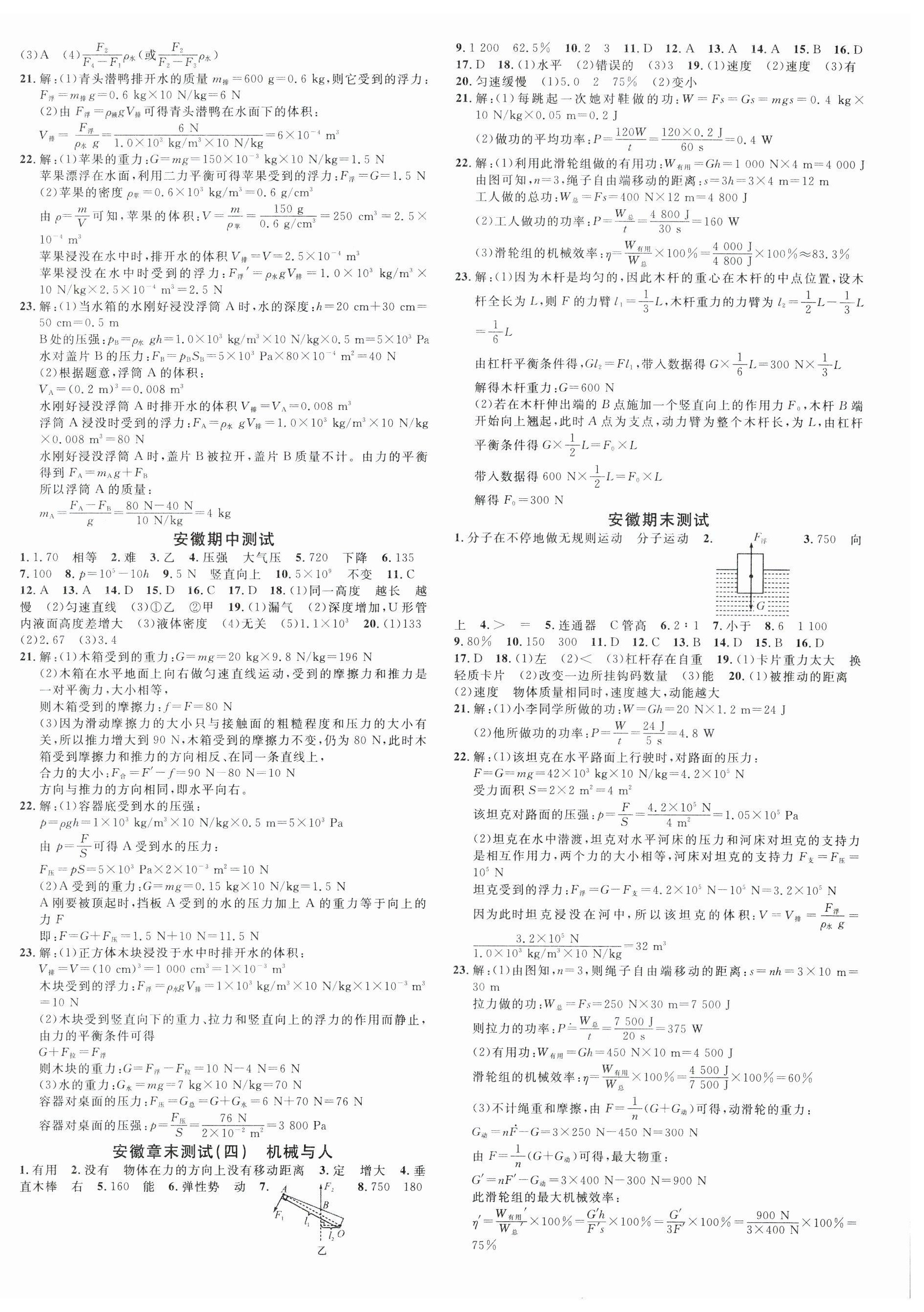 2024年名校课堂八年级物理下册沪科版安徽专版