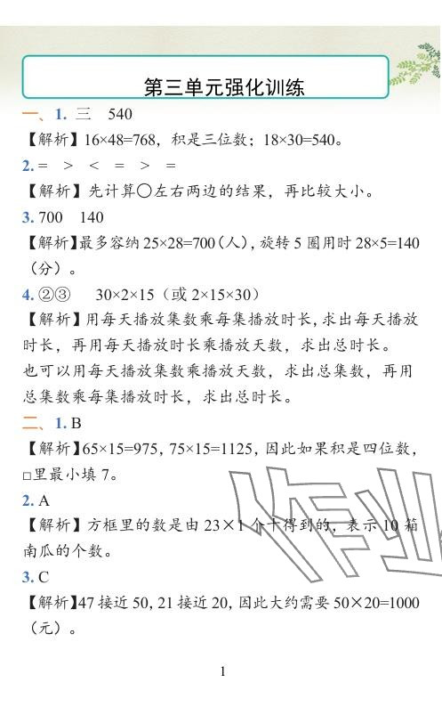 注:目前有些书本章节名称可能整理的还不是很完善,但都是按照顺序排列的,请同学们按照顺序仔细查找。练习册 2024年小学学霸作业本三年级数学下册北师大版广东专版 答案主要是用来给同学们做完题方便对答案用的,请勿直接抄袭。