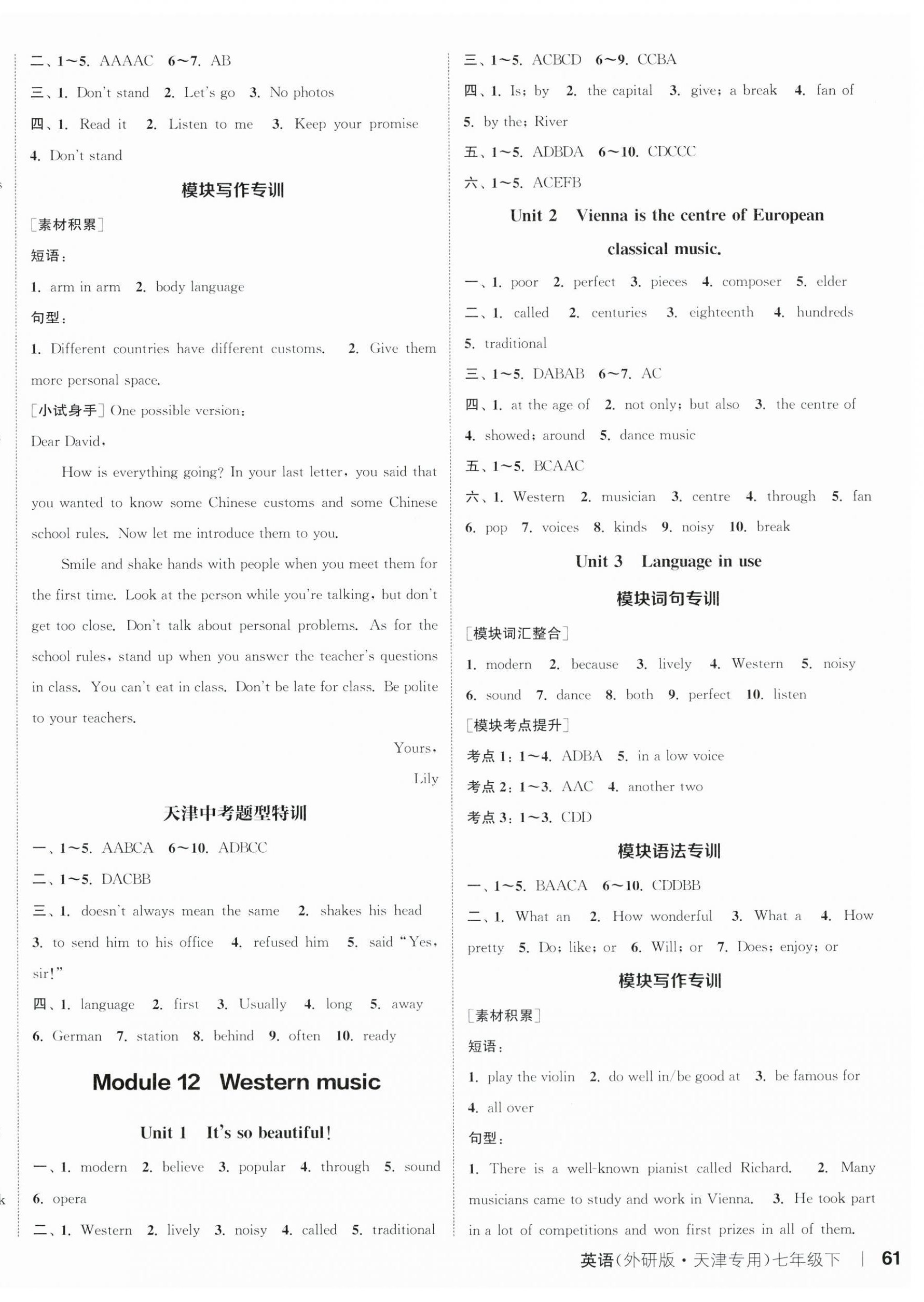 注:目前有些书本章节名称可能整理的还不是很完善,但都是按照顺序排列的,请同学们按照顺序仔细查找。练习册 2024年通城学典课时作业本七年级英语下册外研版天津专版 答案主要是用来给同学们做完题方便对答案用的,请勿直接抄袭。