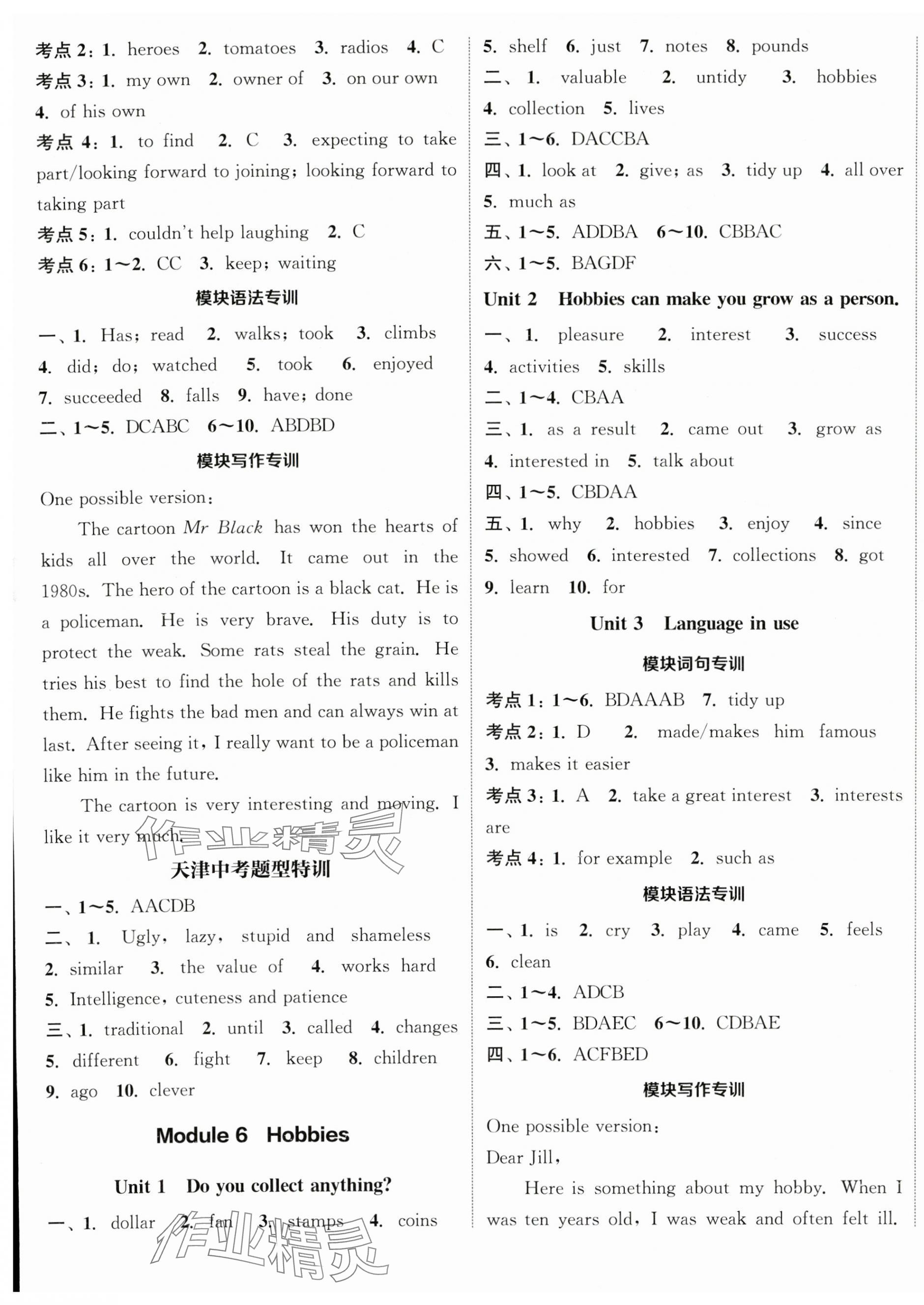 注:目前有些书本章节名称可能整理的还不是很完善,但都是按照顺序排列的,请同学们按照顺序仔细查找。练习册 2024年通城学典课时作业本八年级英语下册外研版天津专版 答案主要是用来给同学们做完题方便对答案用的,请勿直接抄袭。