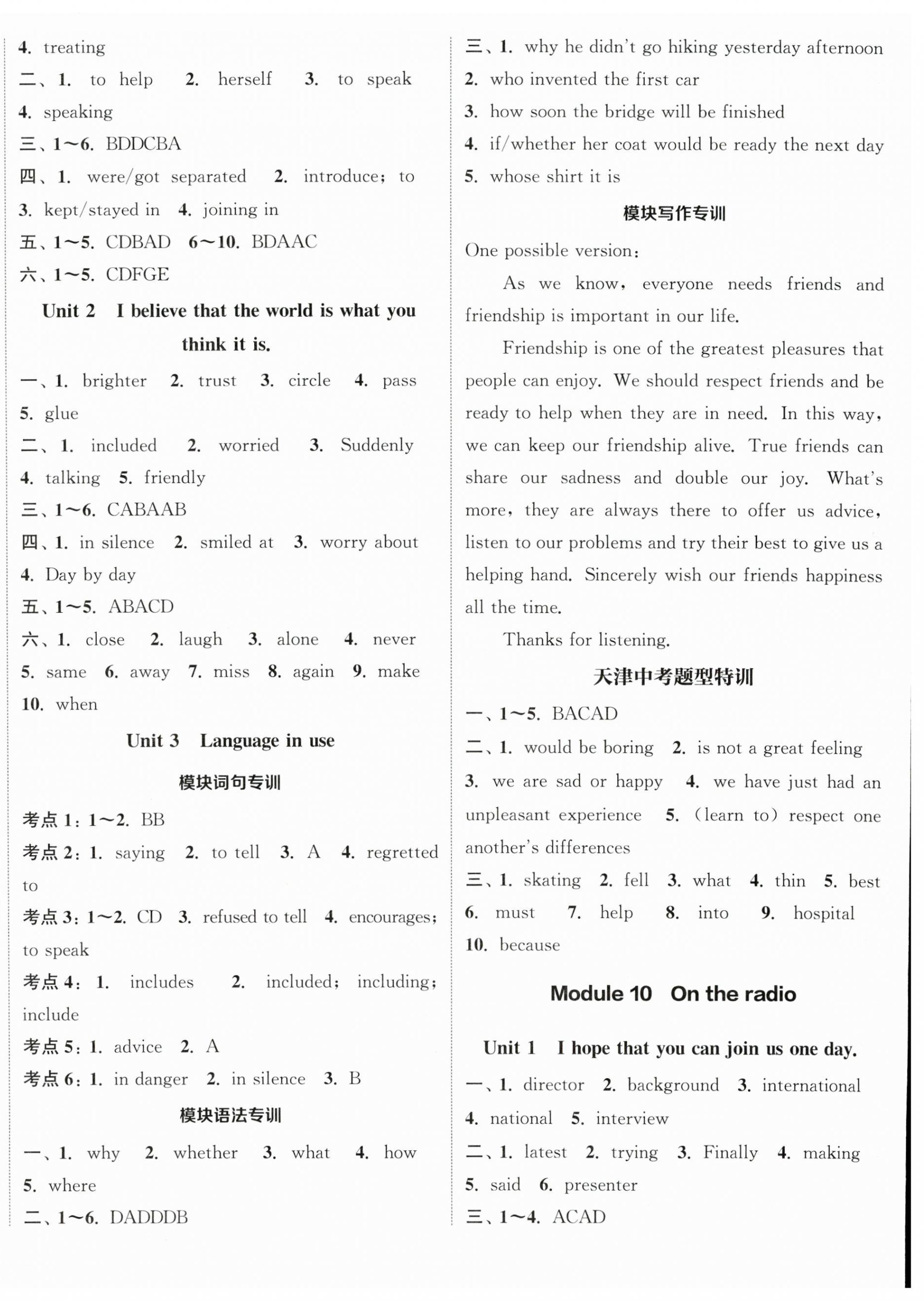 注:目前有些书本章节名称可能整理的还不是很完善,但都是按照顺序排列的,请同学们按照顺序仔细查找。练习册 2024年通城学典课时作业本八年级英语下册外研版天津专版 答案主要是用来给同学们做完题方便对答案用的,请勿直接抄袭。