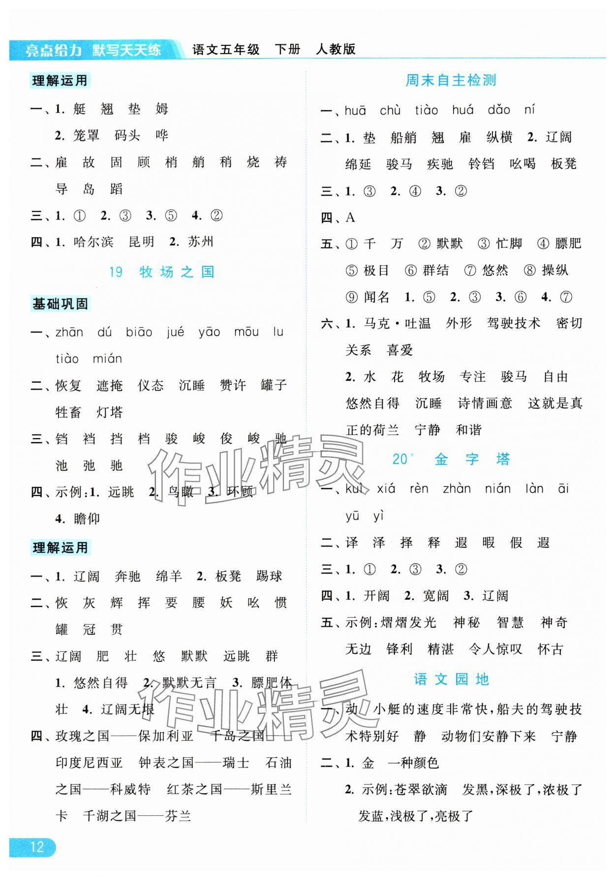 注:目前有些书本章节名称可能整理的还不是很完善,但都是按照顺序排列的,请同学们按照顺序仔细查找。练习册 2024年亮点给力默写天天练五年级语文下册人教版 答案主要是用来给同学们做完题方便对答案用的,请勿直接抄袭。
