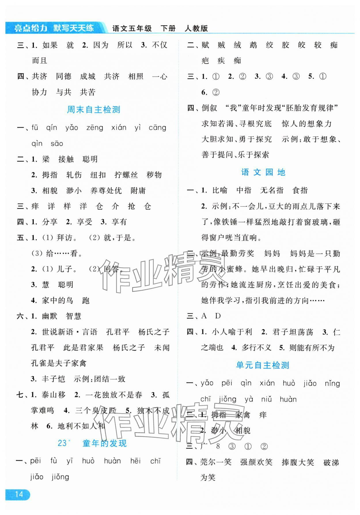 注:目前有些书本章节名称可能整理的还不是很完善,但都是按照顺序排列的,请同学们按照顺序仔细查找。练习册 2024年亮点给力默写天天练五年级语文下册人教版 答案主要是用来给同学们做完题方便对答案用的,请勿直接抄袭。
