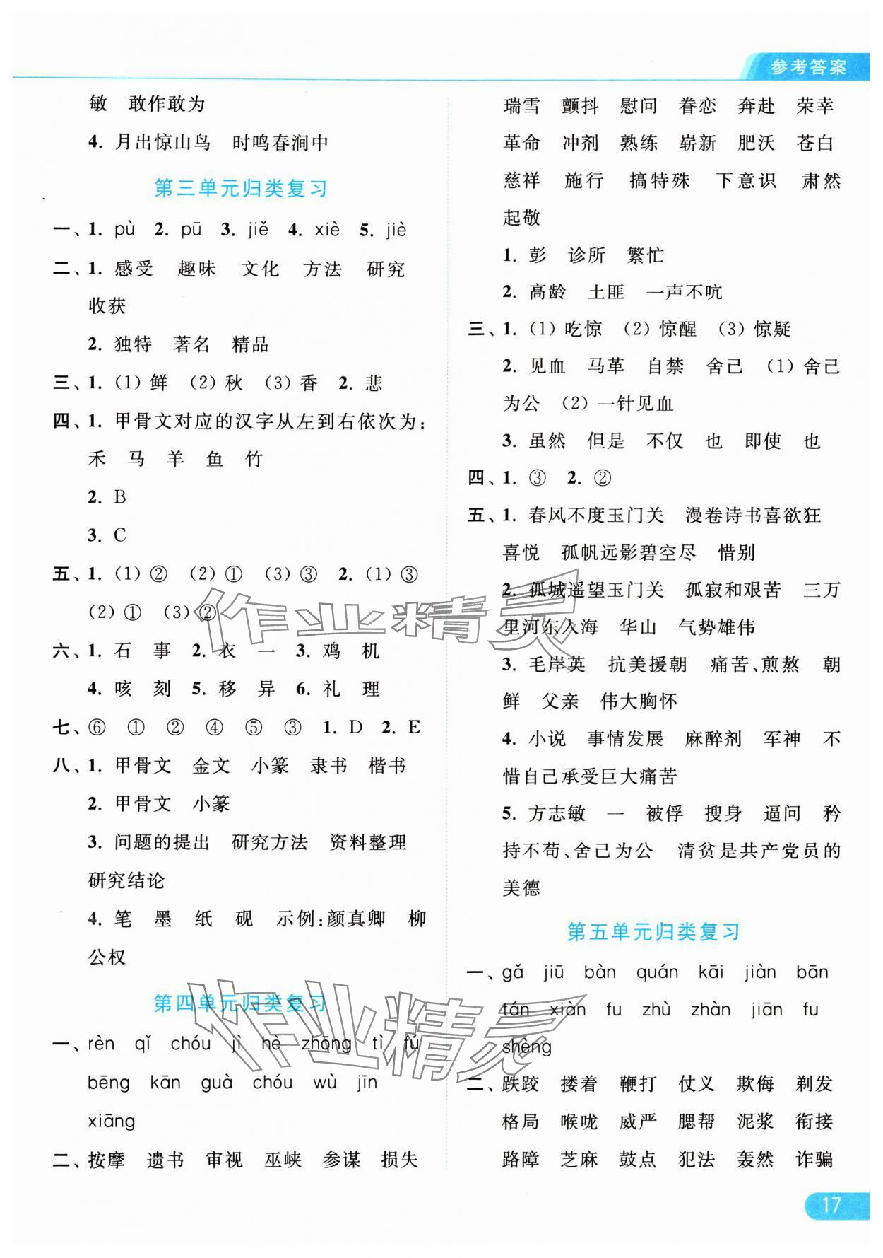 注:目前有些书本章节名称可能整理的还不是很完善,但都是按照顺序排列的,请同学们按照顺序仔细查找。练习册 2024年亮点给力默写天天练五年级语文下册人教版 答案主要是用来给同学们做完题方便对答案用的,请勿直接抄袭。