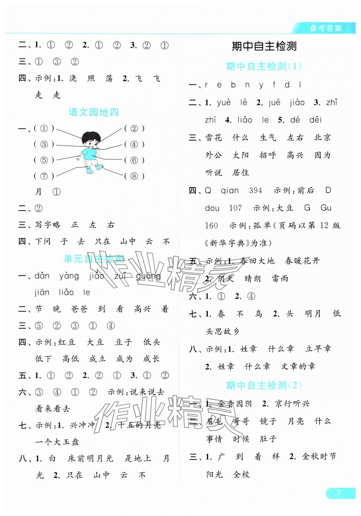 注:目前有些书本章节名称可能整理的还不是很完善,但都是按照顺序排列的,请同学们按照顺序仔细查找。练习册 2024年亮点给力默写天天练一年级语文下册人教版 答案主要是用来给同学们做完题方便对答案用的,请勿直接抄袭。