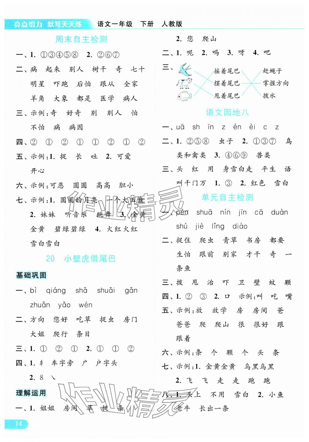 注:目前有些书本章节名称可能整理的还不是很完善,但都是按照顺序排列的,请同学们按照顺序仔细查找。练习册 2024年亮点给力默写天天练一年级语文下册人教版 答案主要是用来给同学们做完题方便对答案用的,请勿直接抄袭。