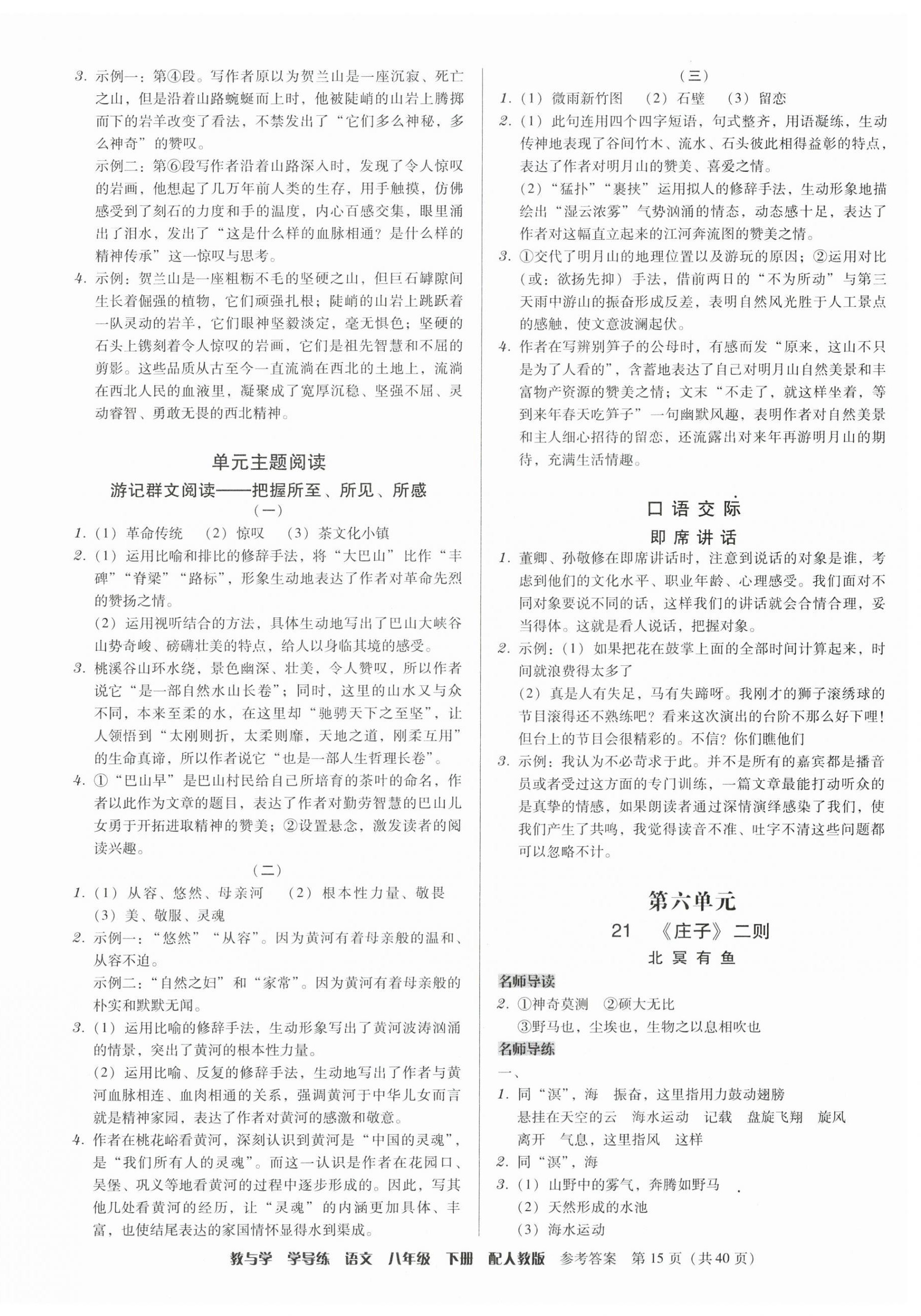 注:目前有些书本章节名称可能整理的还不是很完善,但都是按照顺序排列的,请同学们按照顺序仔细查找。练习册 2024年教与学学导练八年级语文下册人教版 答案主要是用来给同学们做完题方便对答案用的,请勿直接抄袭。