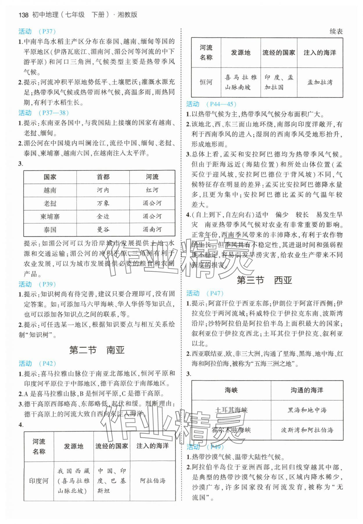 注:目前有些书本章节名称可能整理的还不是很完善,但都是按照顺序排列的,请同学们按照顺序仔细查找。练习册 2024年教材课本七年级地理下册湘教版 答案主要是用来给同学们做完题方便对答案用的,请勿直接抄袭。