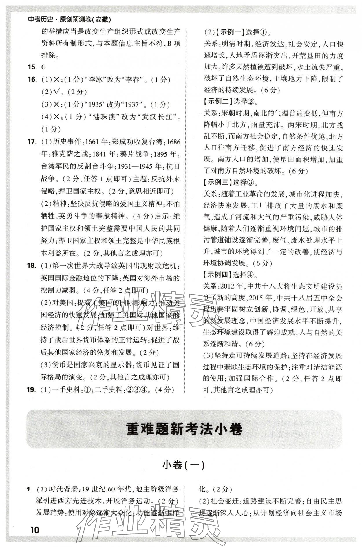2024年万唯中考原创预测卷历史安徽专版