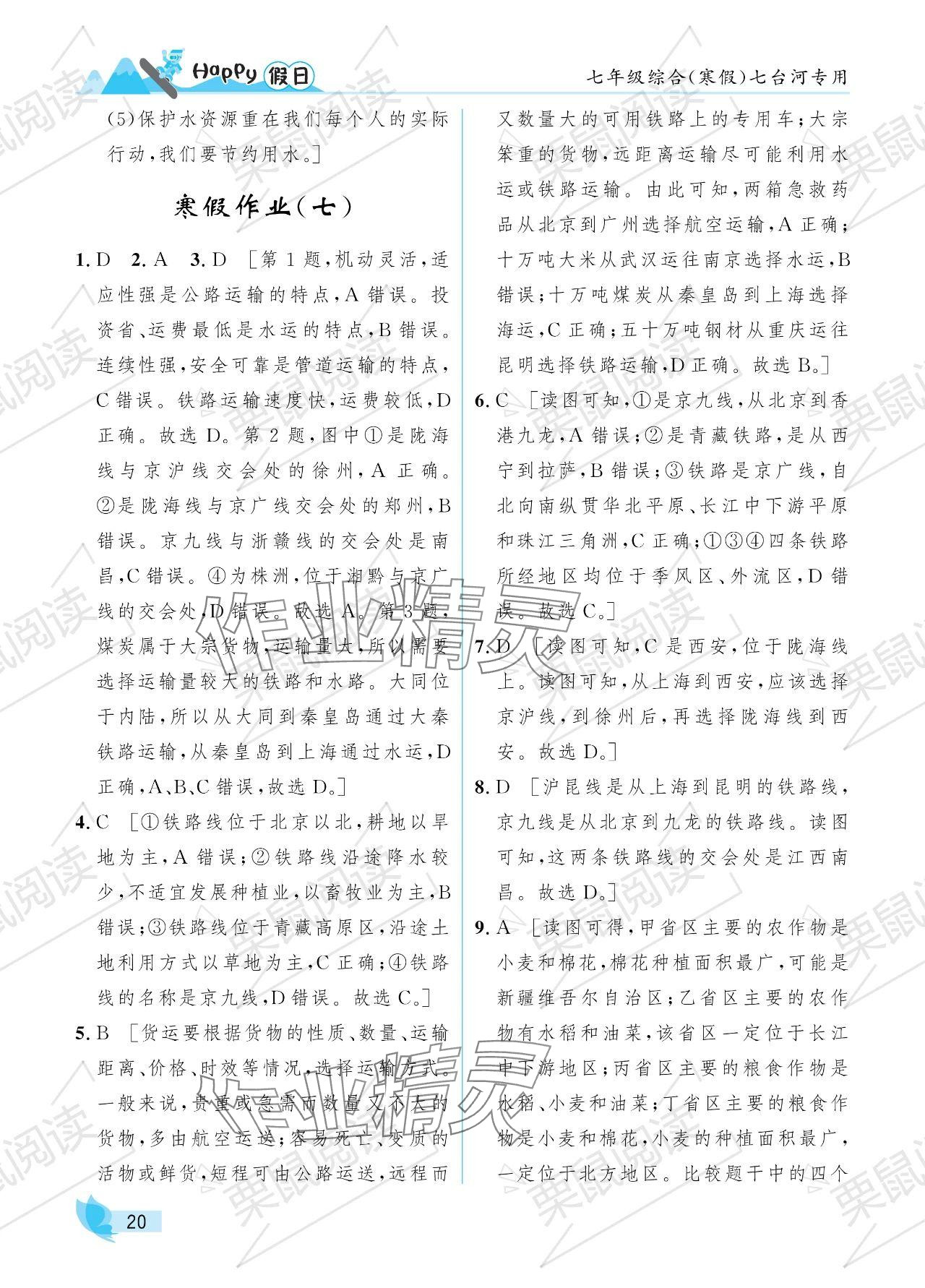 注:目前有些书本章节名称可能整理的还不是很完善,但都是按照顺序排列的,请同学们按照顺序仔细查找。练习册 2024年寒假Happy假日七年级综合七台河专版 答案主要是用来给同学们做完题方便对答案用的,请勿直接抄袭。