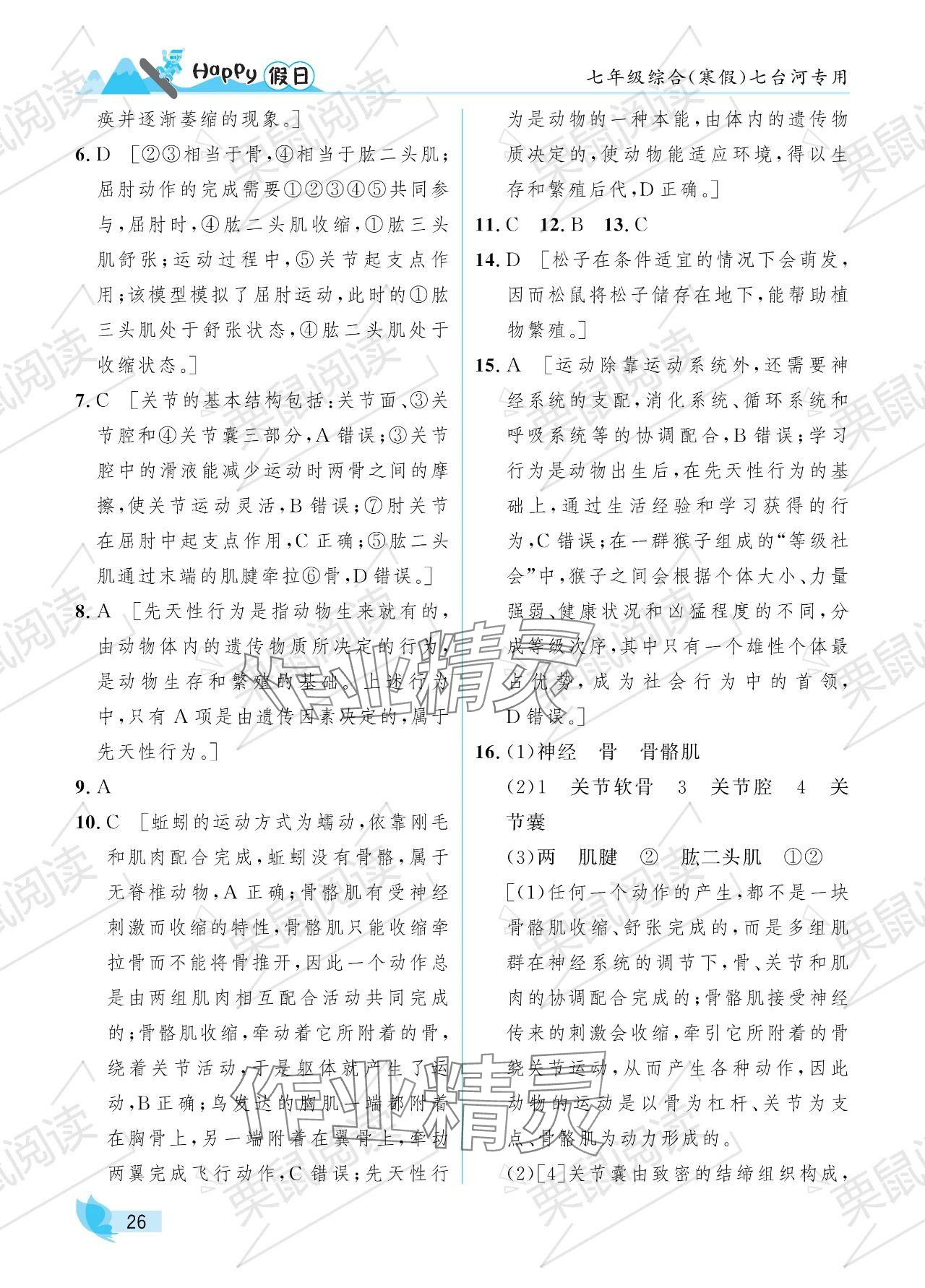 注:目前有些书本章节名称可能整理的还不是很完善,但都是按照顺序排列的,请同学们按照顺序仔细查找。练习册 2024年寒假Happy假日七年级综合七台河专版 答案主要是用来给同学们做完题方便对答案用的,请勿直接抄袭。