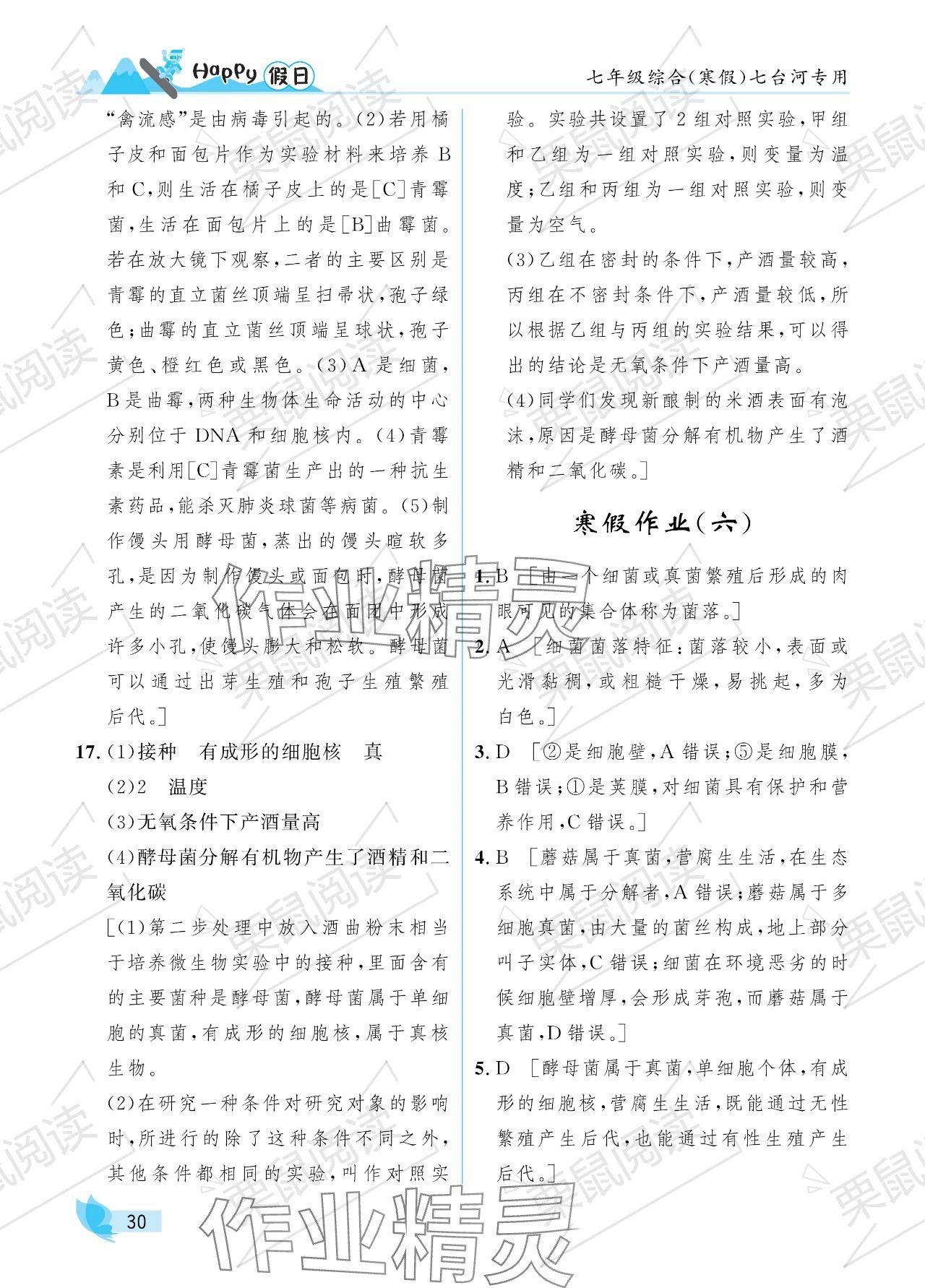 注:目前有些书本章节名称可能整理的还不是很完善,但都是按照顺序排列的,请同学们按照顺序仔细查找。练习册 2024年寒假Happy假日七年级综合七台河专版 答案主要是用来给同学们做完题方便对答案用的,请勿直接抄袭。